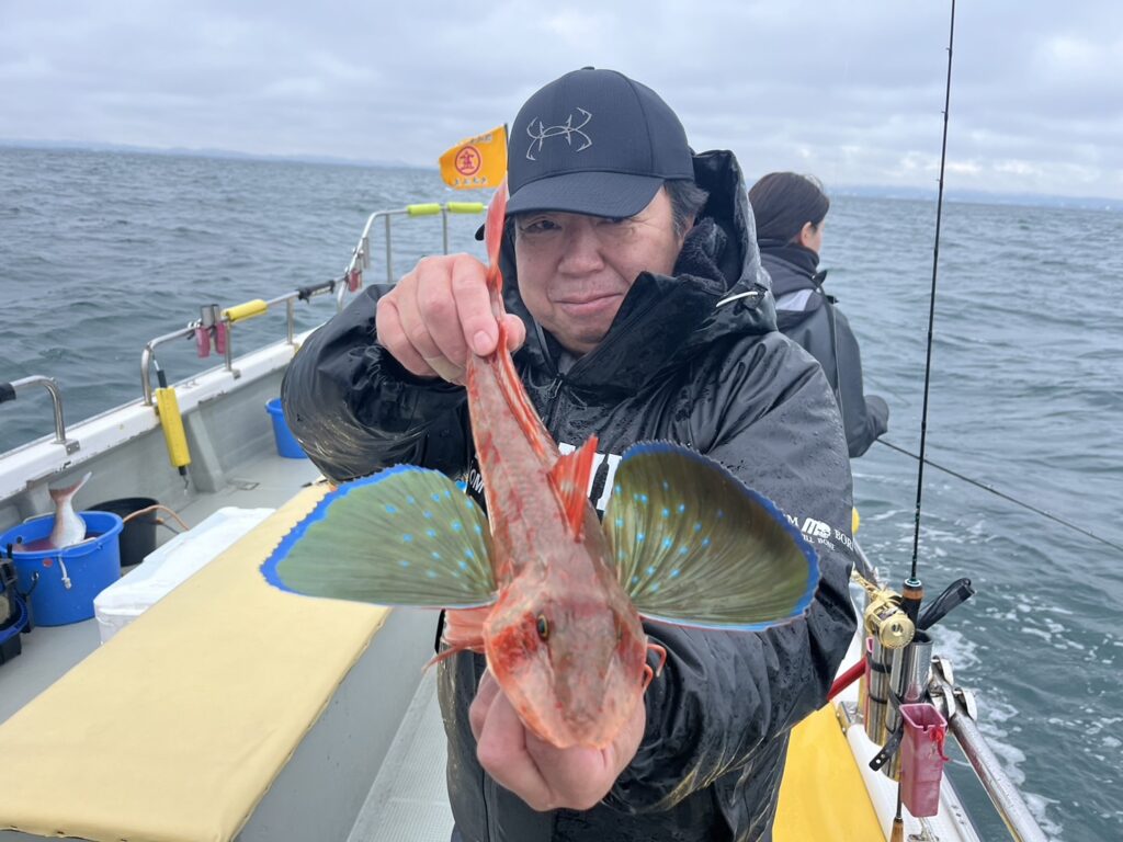 本日の釣果は、真鯛、ホウボウ、カナガシラ、イナダ、ギガアジ、メジ、カサゴ、イシモチ、ドチザメ‥‥9目。
