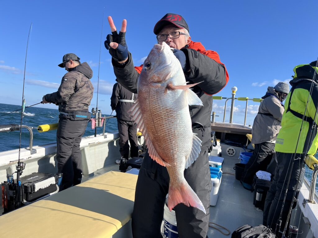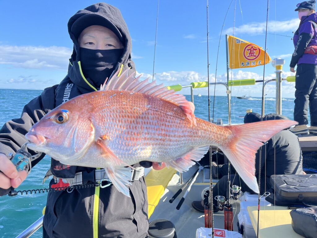 そんな中青物やサワラが顔を見せ、その中に本命真鯛!