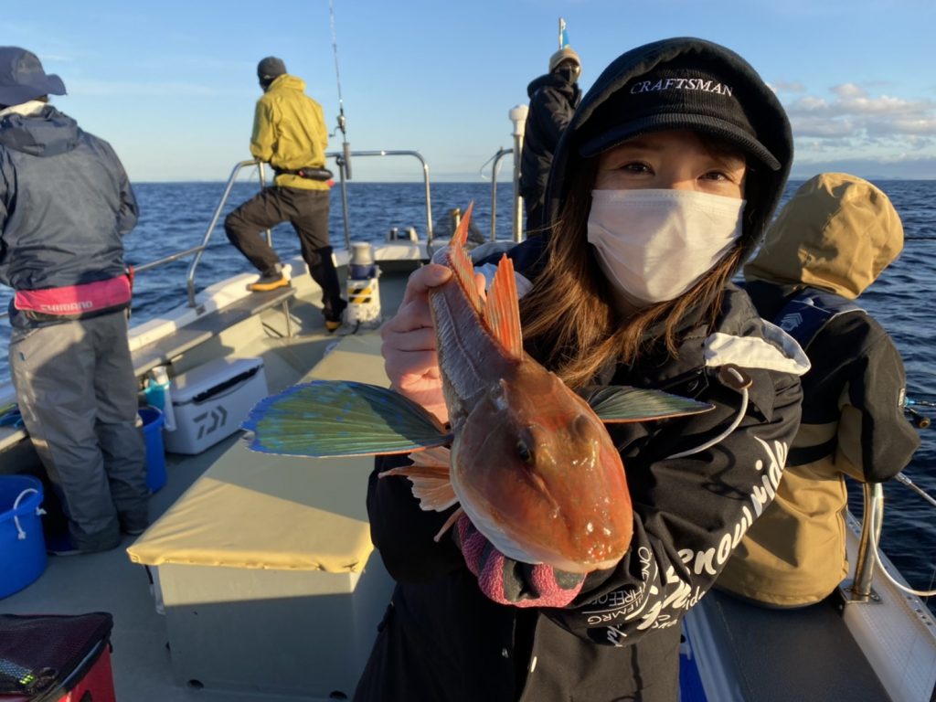 本日は強風の中真鯛狙いライトジギング、タイラバ、テンヤ五目で出船しました。