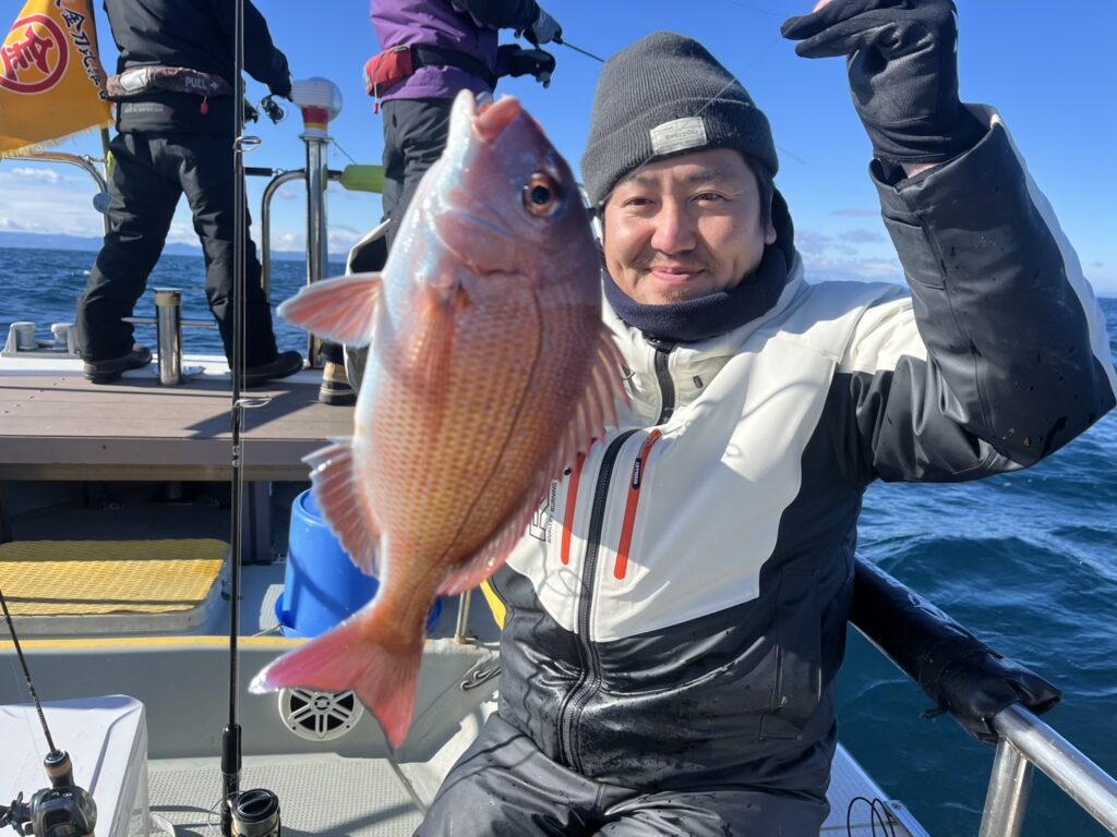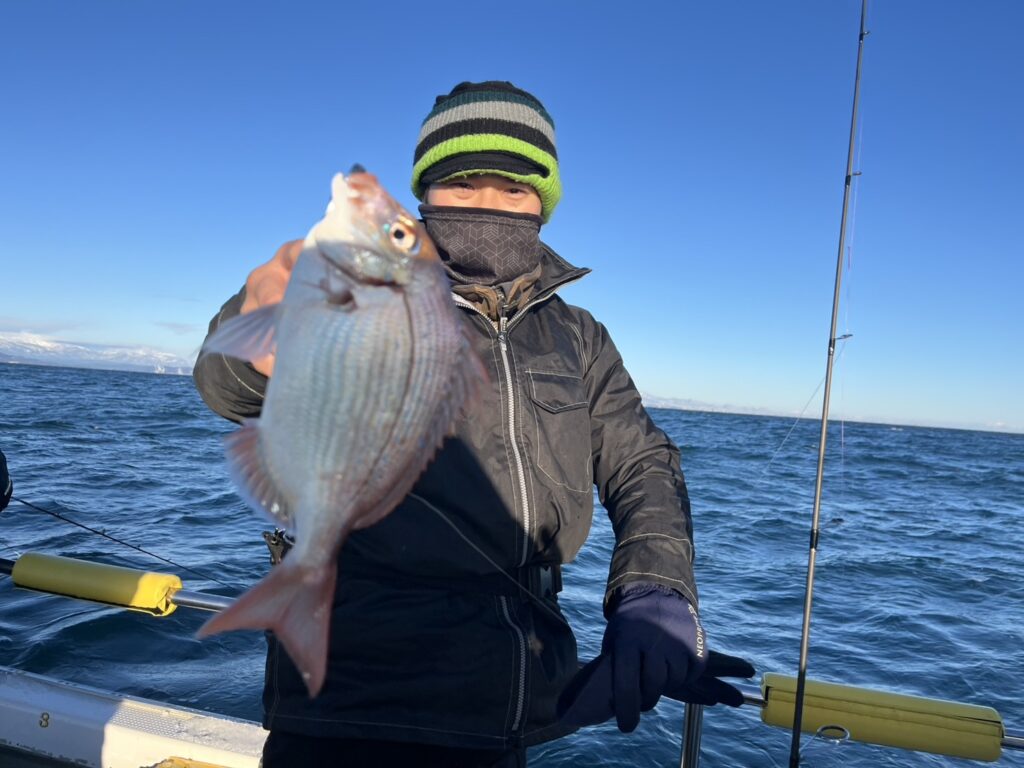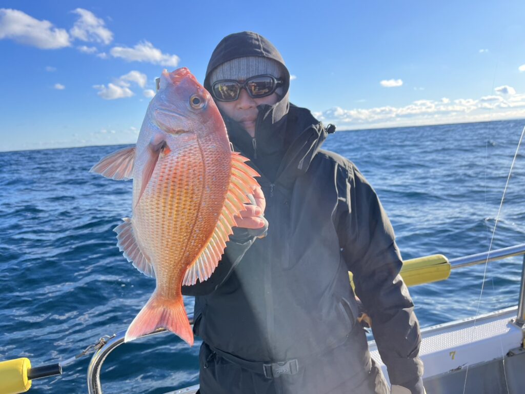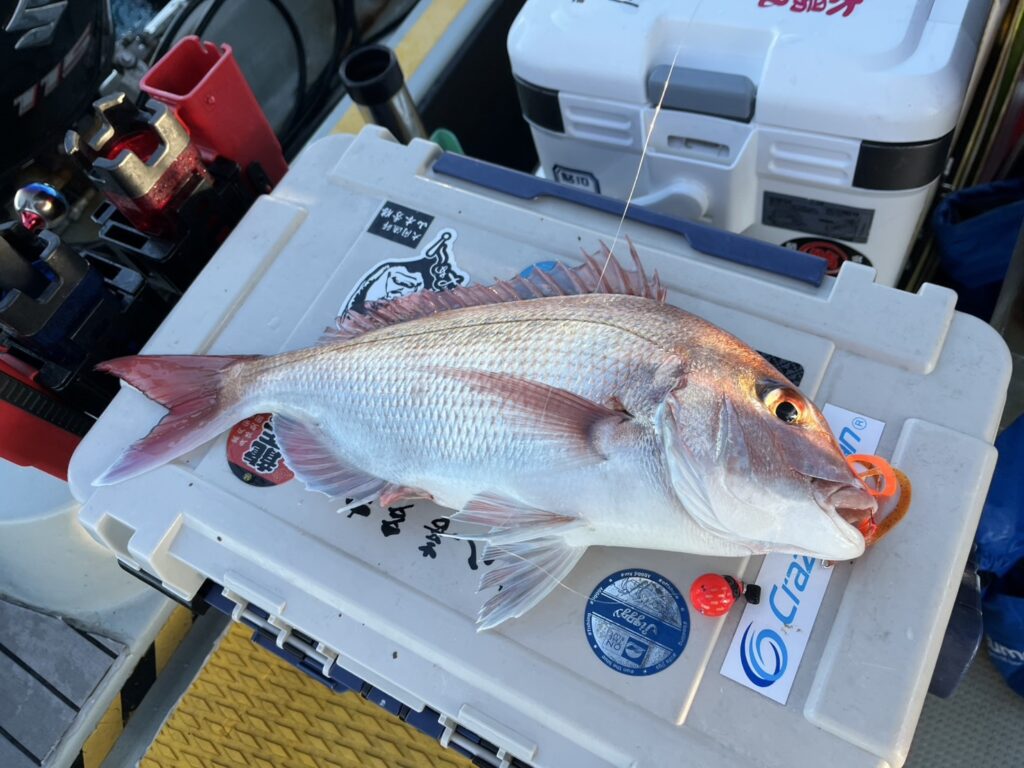 様子を見ながら、風の止んだタイミングで沖に出るとそれなりに魚達が遊んでくれて、最終的に真鯛は12枚キャッチ!