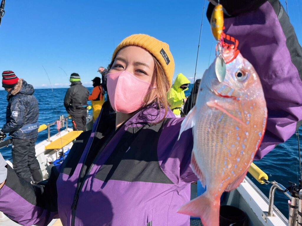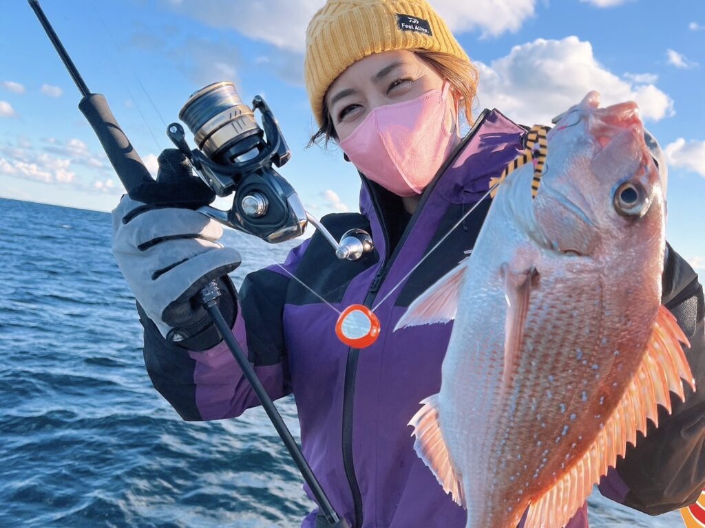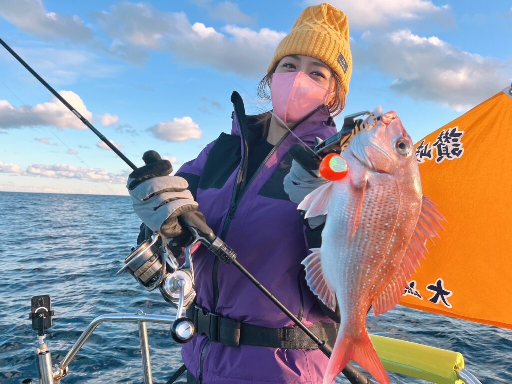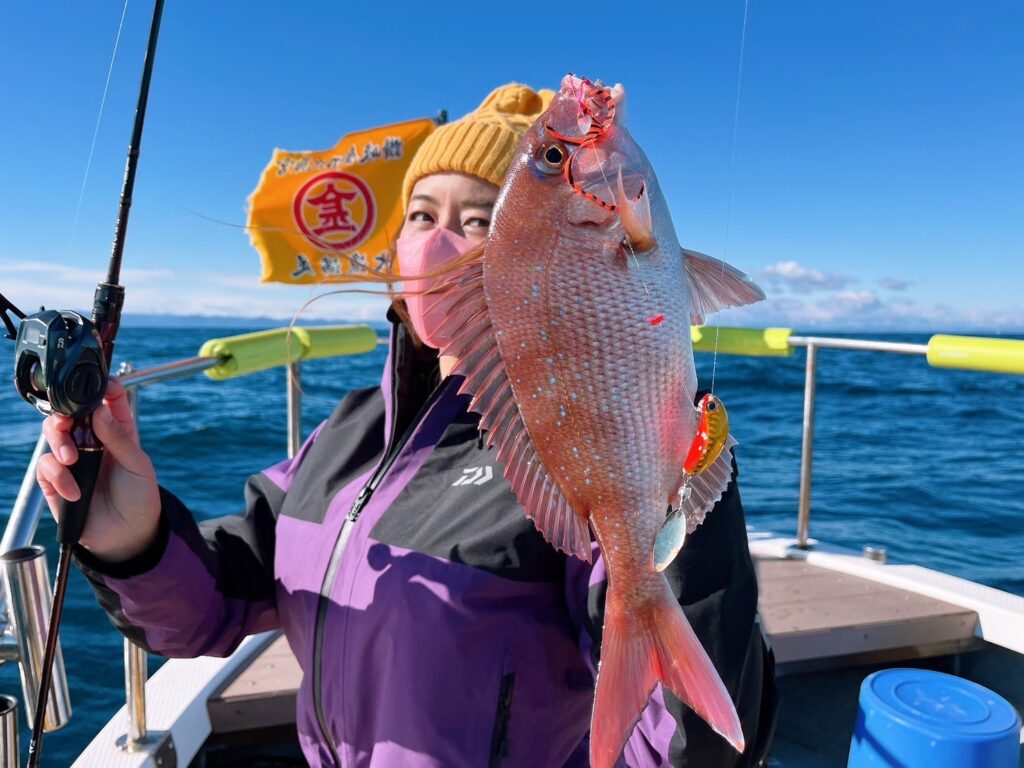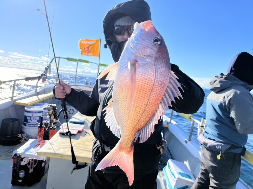 様子を見ながら、風の止んだタイミングで沖に出るとそれなりに魚達が遊んでくれて、最終的に真鯛は12枚キャッチ!