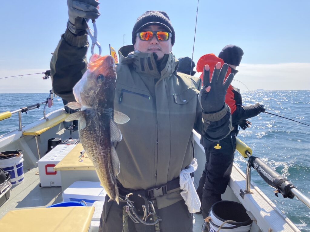 何箇所か打って、何とか真鱈は見えたものの後が続かず迷走しているとお仲間から良い情報を貰い、それから何とか拾い釣りをして最終的には本命真鱈は船中32本!