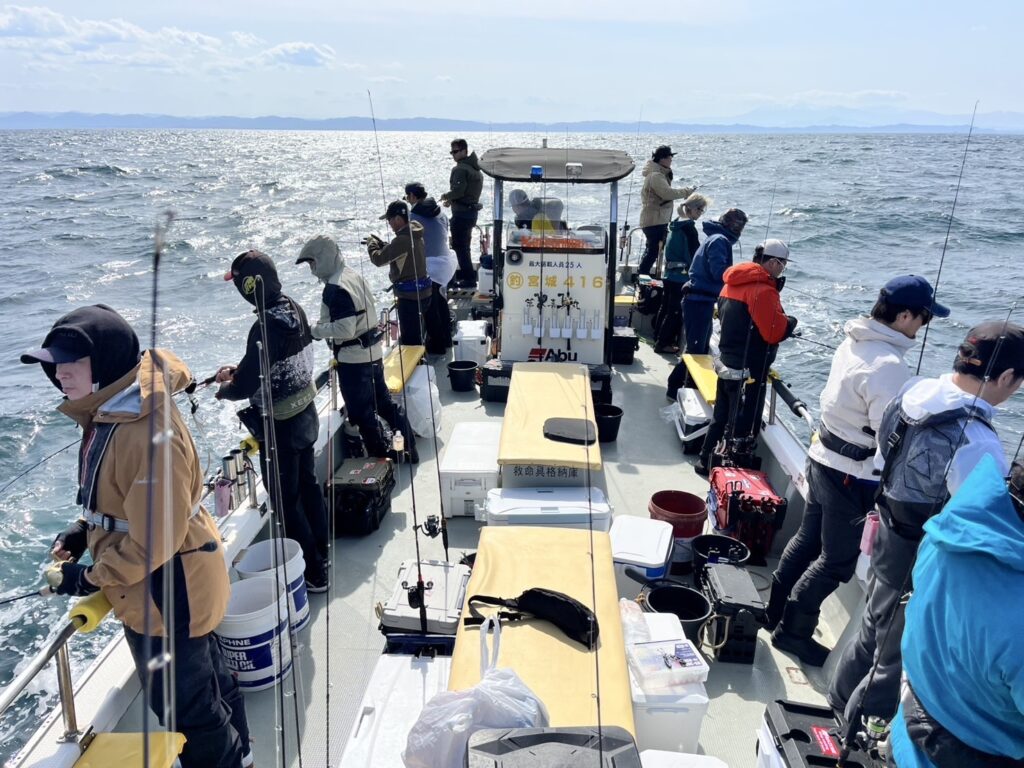ポイントに着くと、風は終始吹き続けてザブザブの中の釣行となりましたが、皆さんの頑張りで19〜6本の船中160本オーバーでまずまずの釣果となりました。