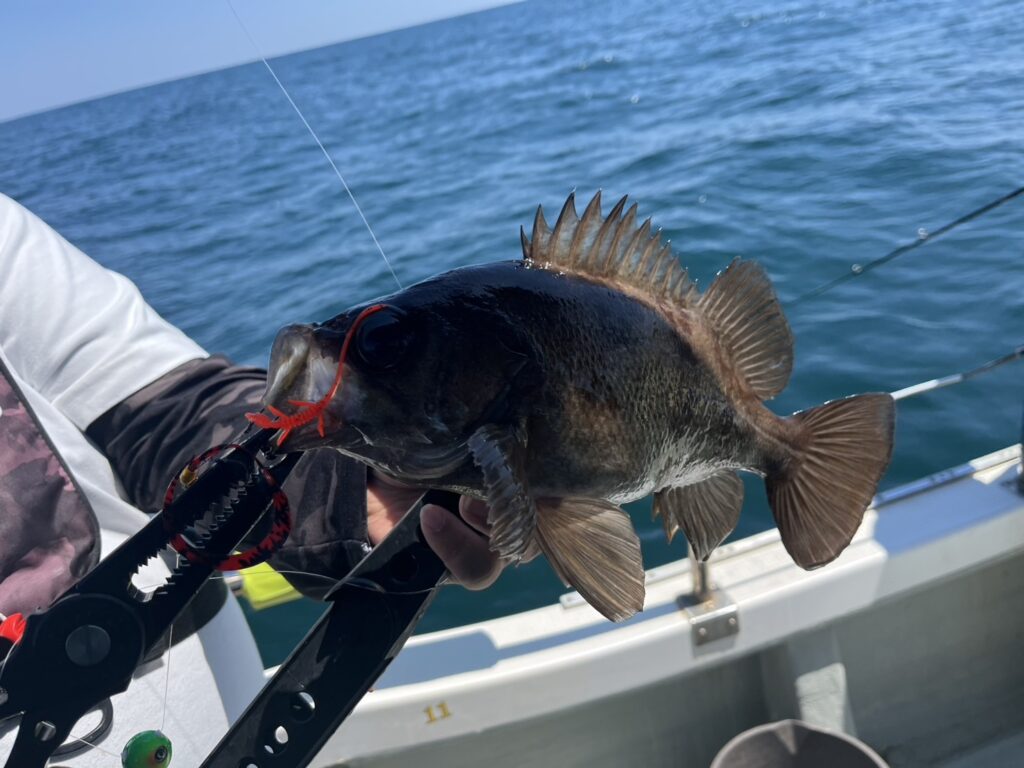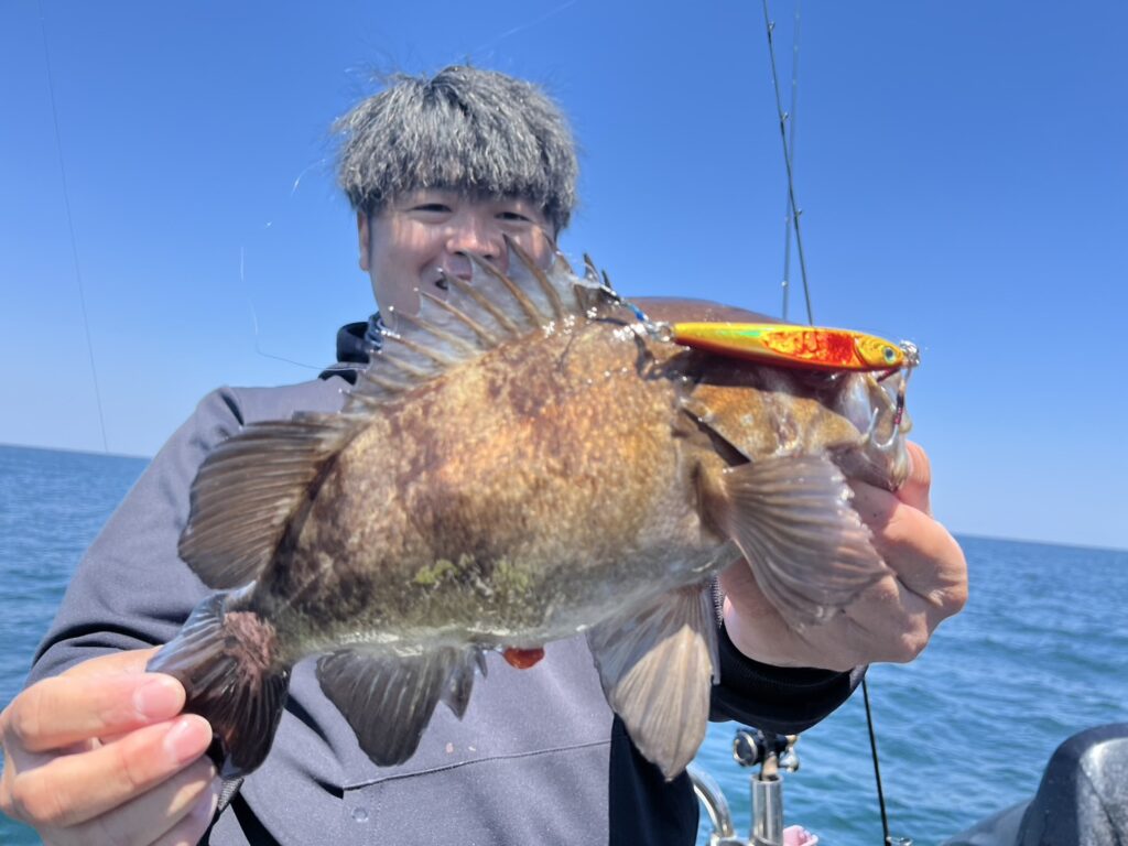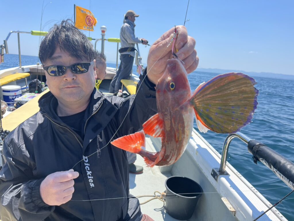 お昼ぐらい迄に本命真鯛は3枚キャッチして午後から風予報もあったので帰港となりました。本日の釣果は、真鯛、太刀魚、ホウボウ、カナガシラ、メバル、マサバ‥‥6目。
