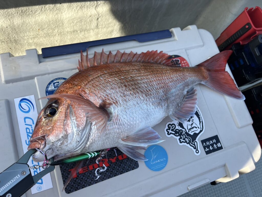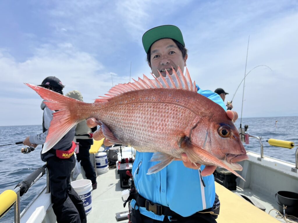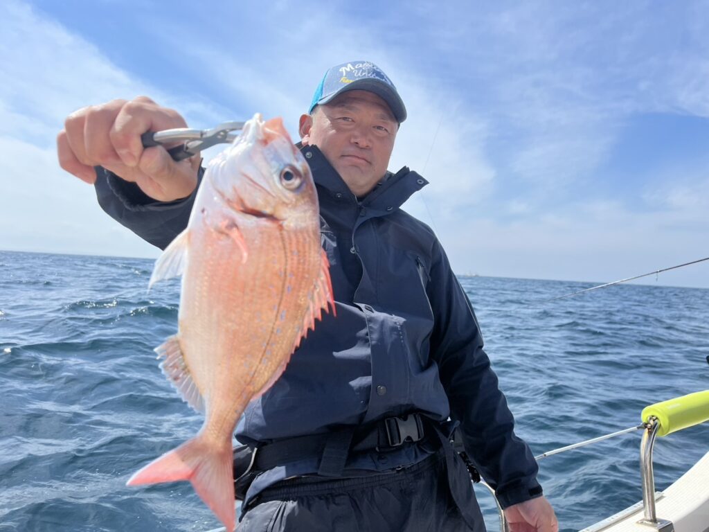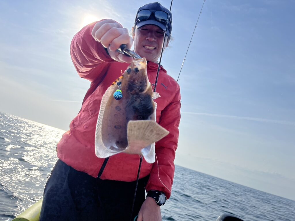 午後になり座布団ビラメをキャッチすると真鯛も追加。