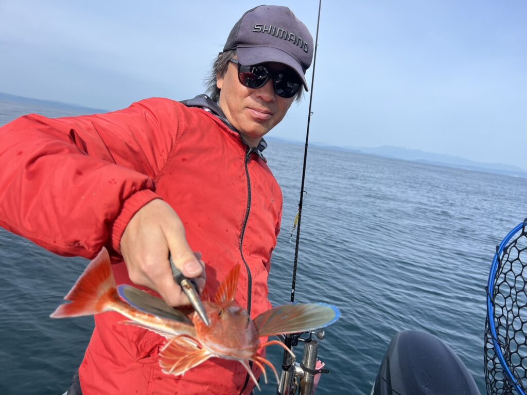 本日の釣果は、真鯛、ホウボウ、カナガシラ、シーバス、メバル、ウッカリカサゴ、ミズガレイ、マサバ、ショウサイフグ‥‥9目。