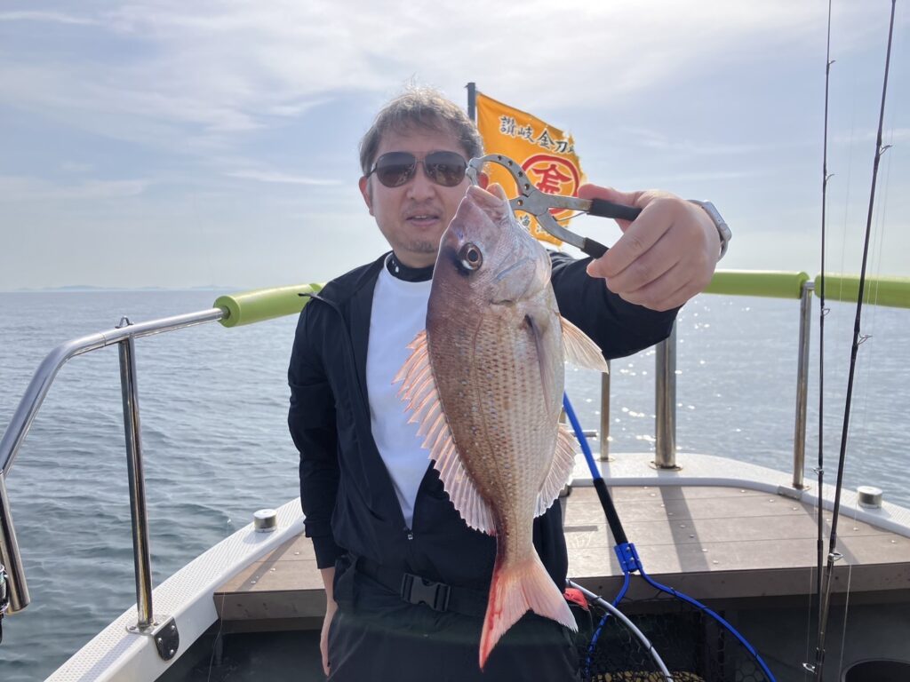 その後最近好調のエリアに行くも潮が動かず、何とか本命真鯛は2枚キャッチ!