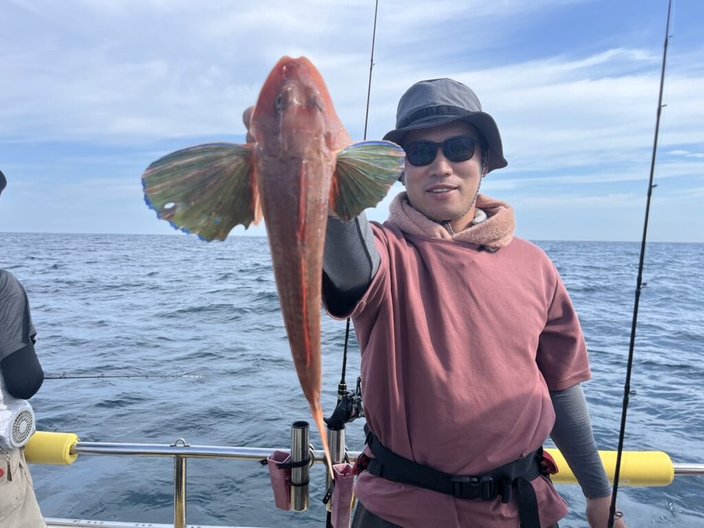 本日の釣果は、ハナダイ、ホウボウ、カナガシラ、ヒラメ、ミズガレイ、トラフグ、メバル、イシモチ、マサバ‥‥9目。