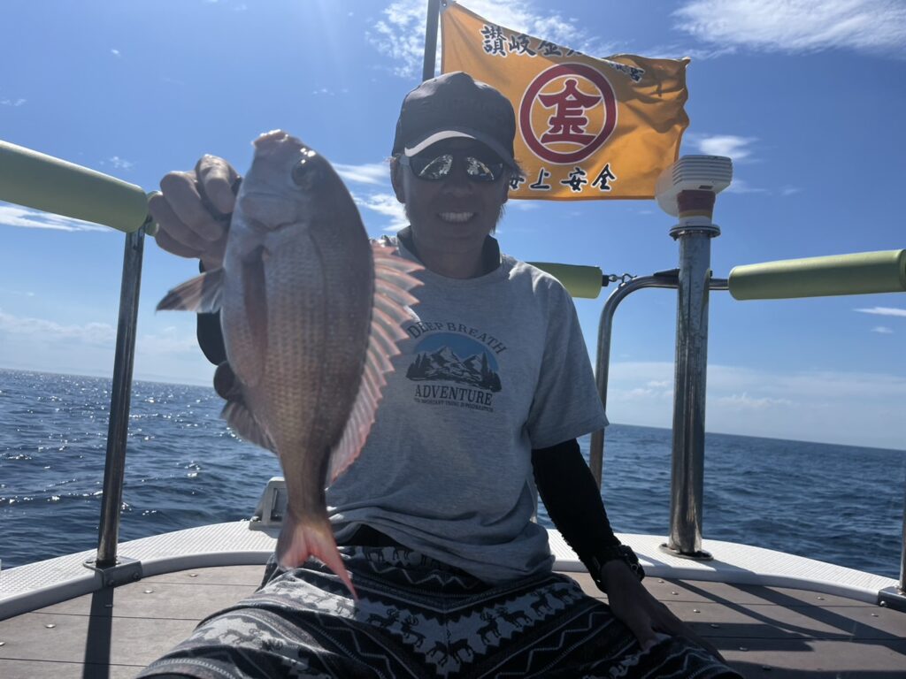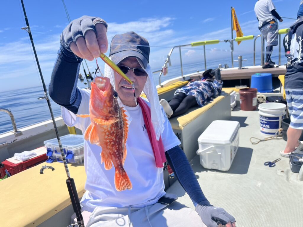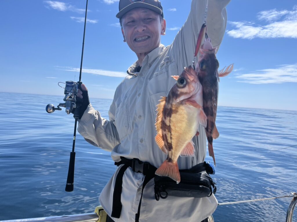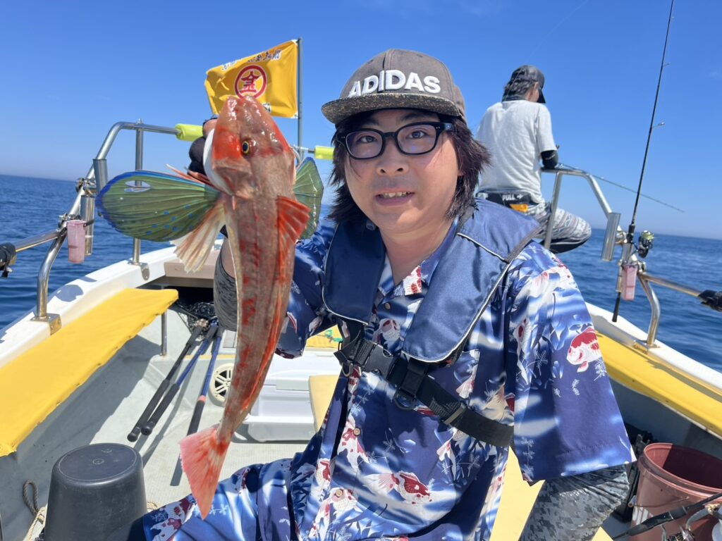本日の釣果は、真鯛、ハナダイ、ホウボウ、カナガシラ、ワラサ、太刀魚、トラフグ、タマガンゾウビラメ、ミズガレイ、沖メバル、白メバル、マゾイ、ウッカリカサゴ‥‥13目。