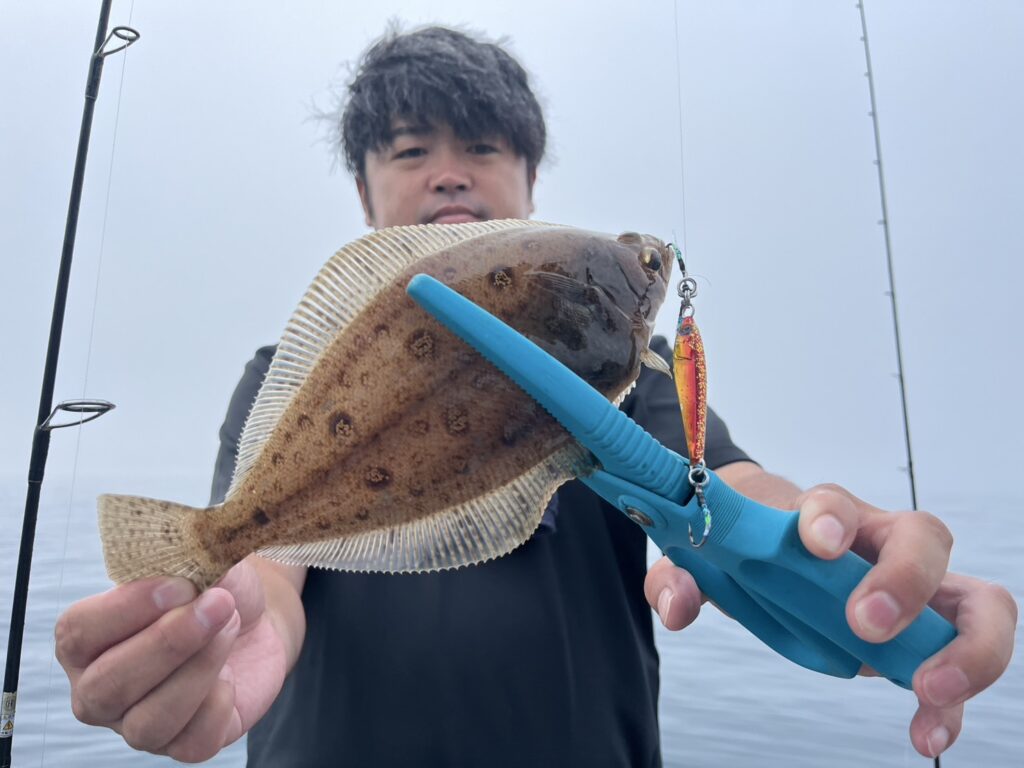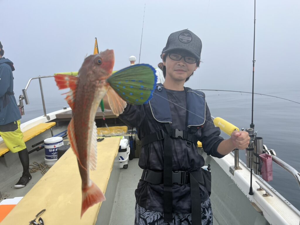 本田の釣果は、真鯛、ホウボウ、カナガシラ、トラフグ、ワラサ、タマガンゾウビラメ、ミズガレイ、メジ‥‥8目。