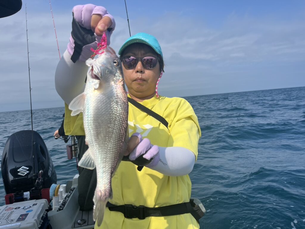 ゲストのヒラメとギガアジとデカサバはたくさん釣れましたが、本命真鯛は小型1枚のみ‥‥。