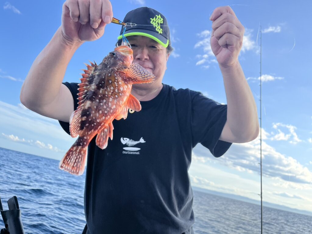 本日の釣果は、ハナダイ、ホウボウ、カナガシラ、ワラサ、ヒラメ、ギガアジ、ウッカリカサゴ、メバル、マサバ‥‥9目。