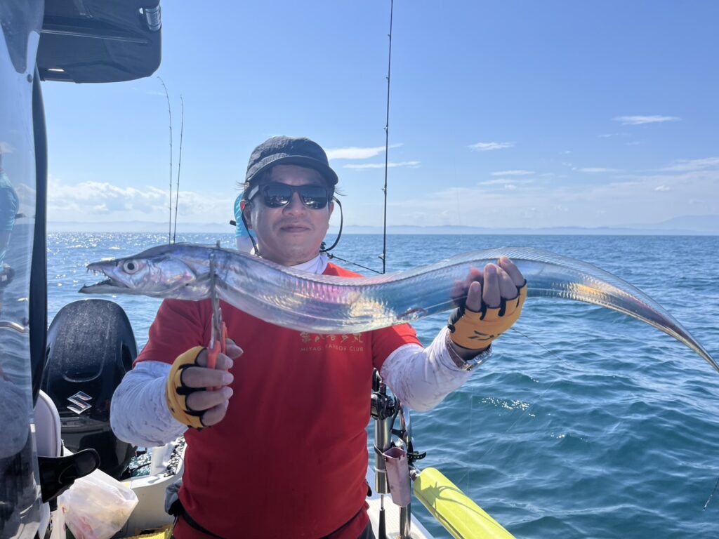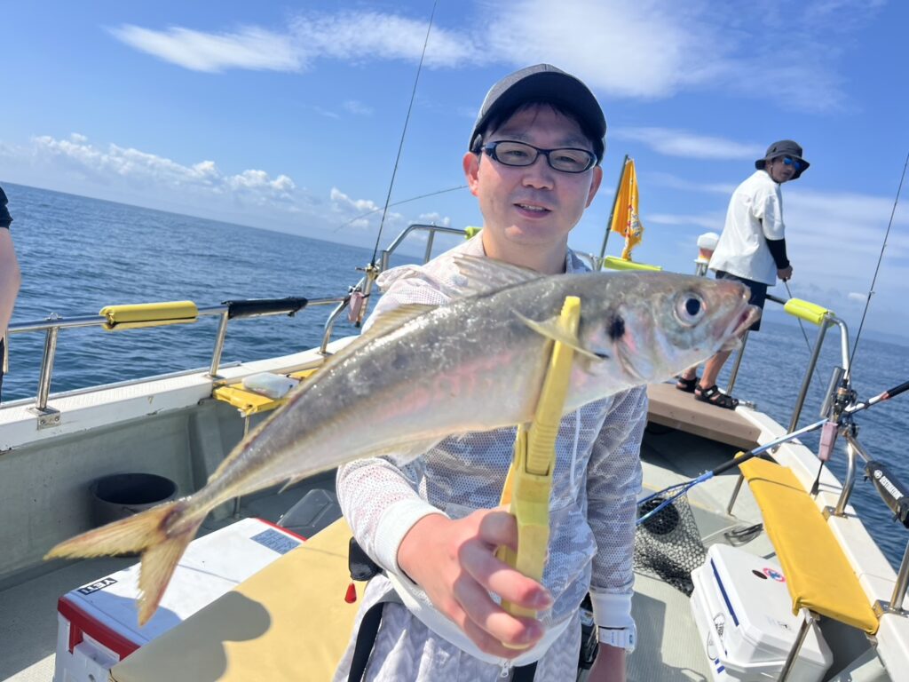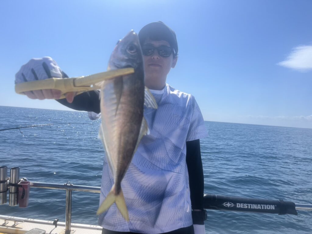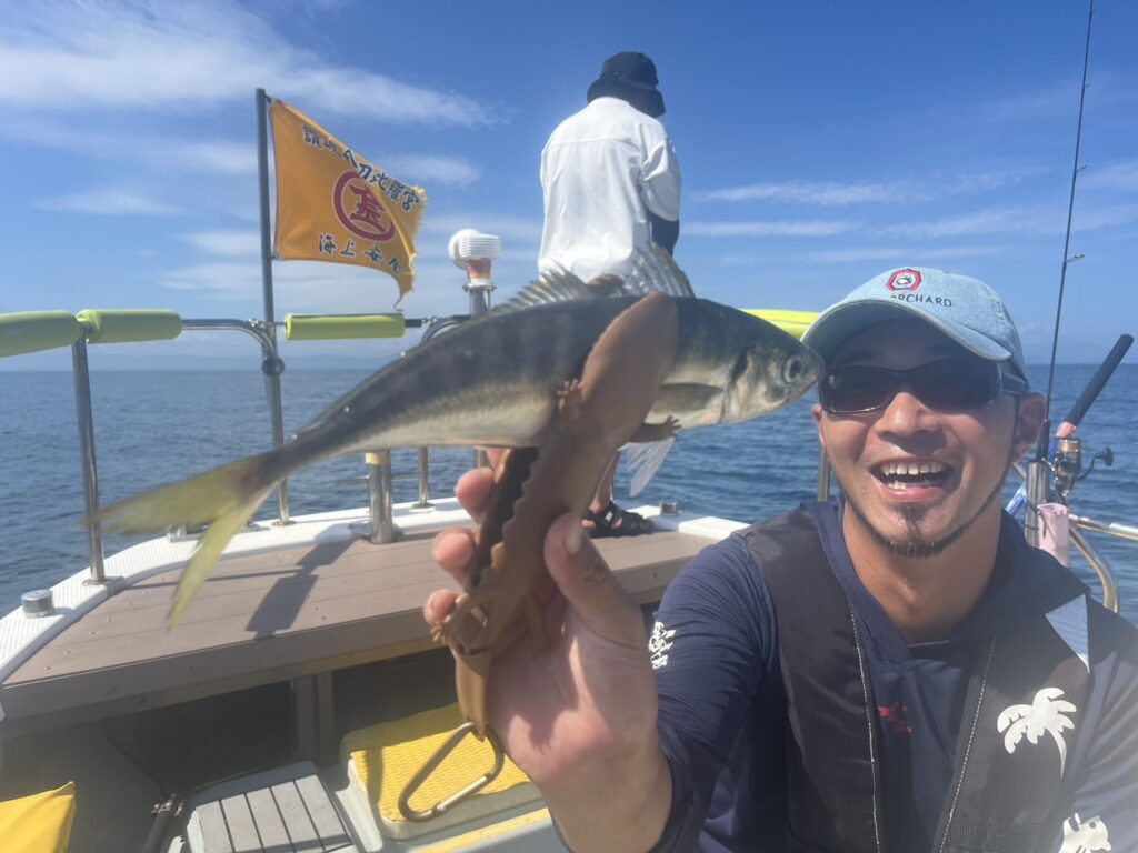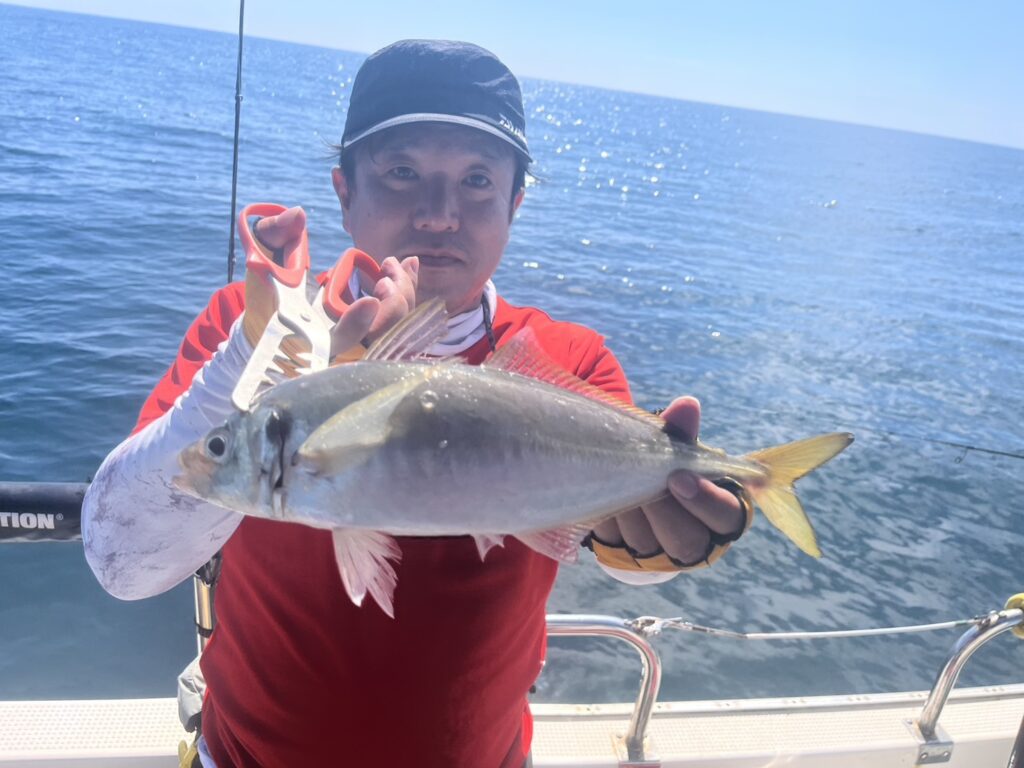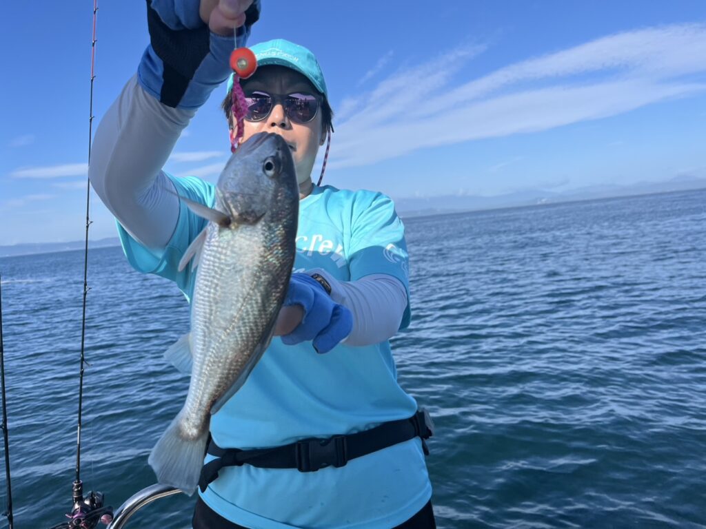 本日の釣果は、真鯛、ホウボウ、カナガシラ、太刀魚、ギガアジ、マサバ、ヒラメ、メバル、ウッカリカサゴ、イシモチ、シイラ、ポジメン、カタクチイワシ‥‥13目。
