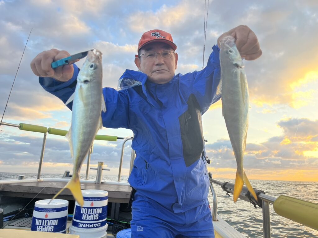 本日の釣果は、真鯛、ハナダイ、ホウボウ、カナガシラ、ギガアジ、ワラサ、カンパチ、マサバ、シイラ、ヒラメ、ウッカリカサゴ、ショウサイフグ‥‥12目。