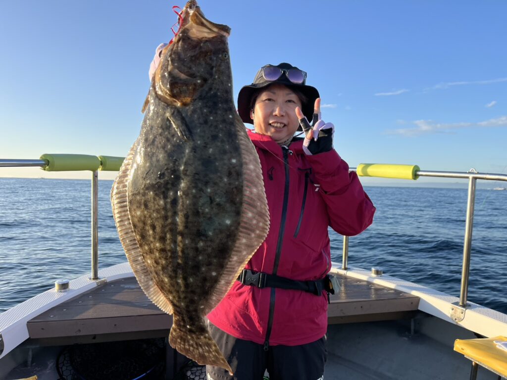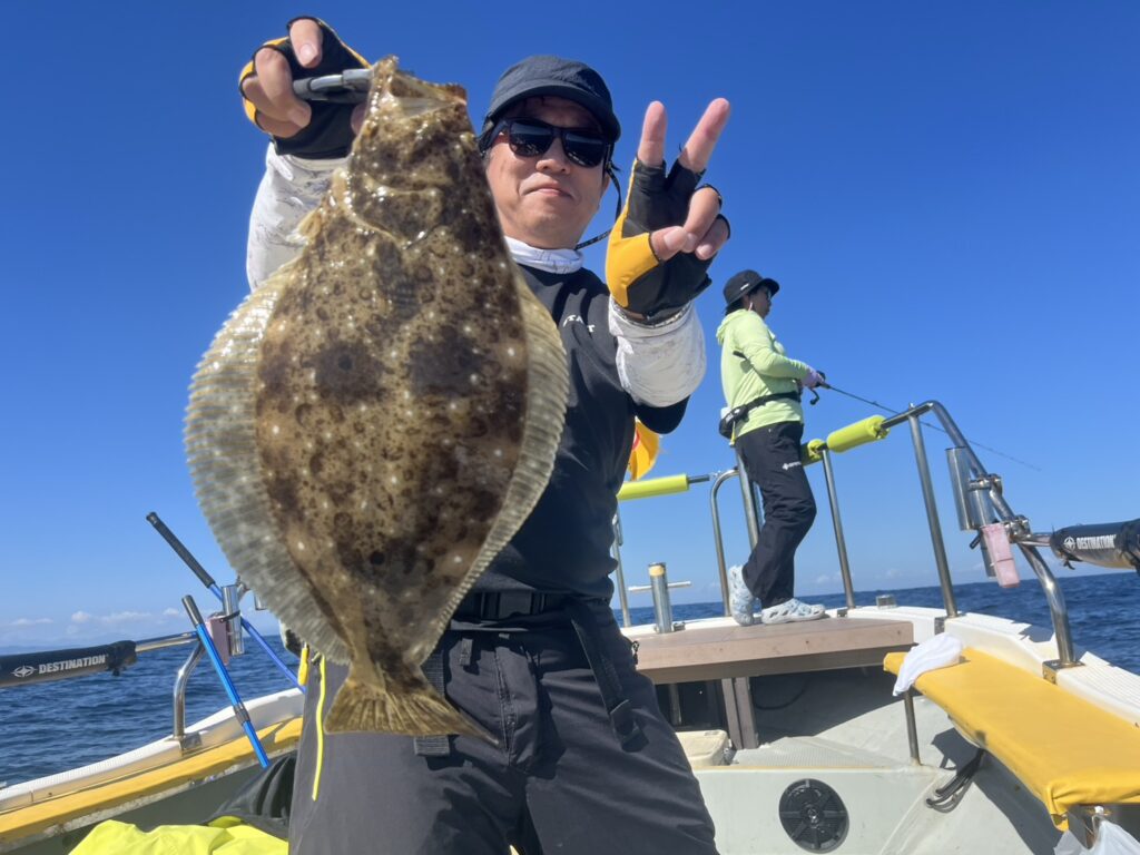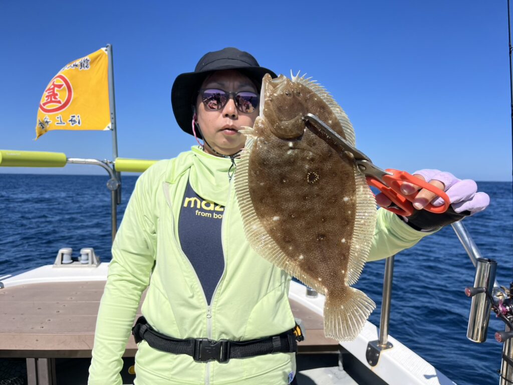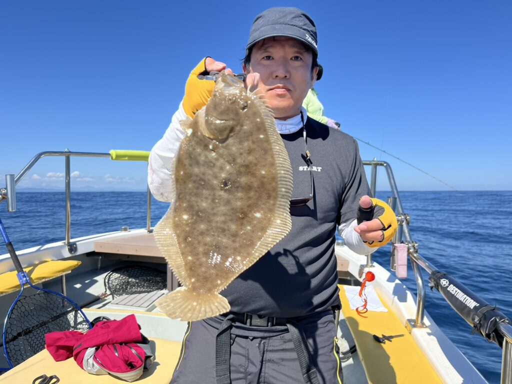 その後大きくエリアチェンジすると真鯛とヒラメ立て続けにキャッチして、後半反応の良かったエリアに戻るも不発‥‥。