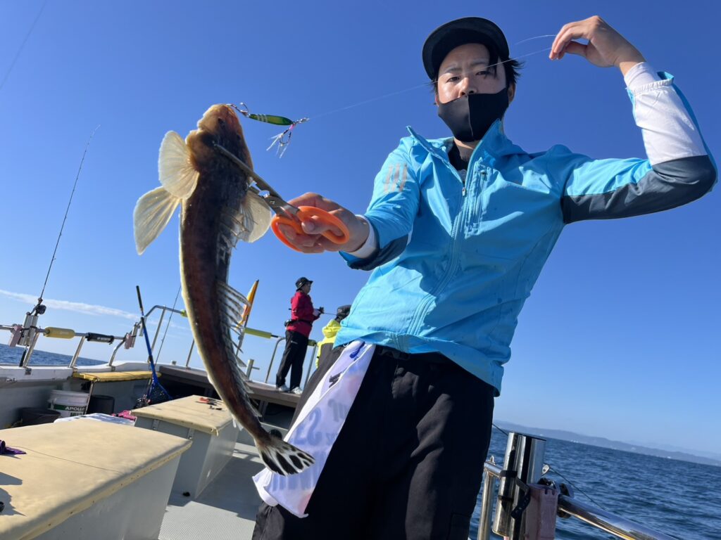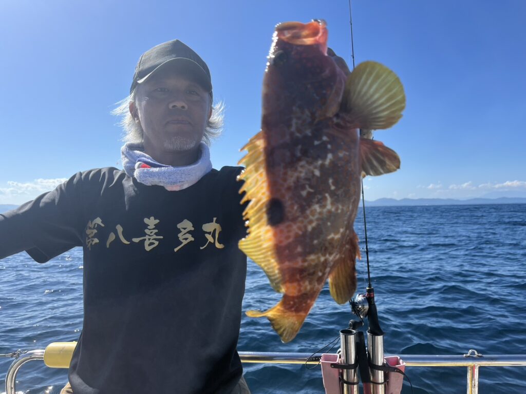 本日の釣果は、真鯛、ホウボウ、キジハタ、ウッカリカサゴ、メバル、ヒラメ、ガンゾウ、ミズガレイ、マゴチ、ギガアジ、イナダ、マサバ、シイラ、メジ‥‥14目。