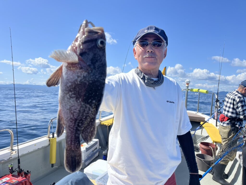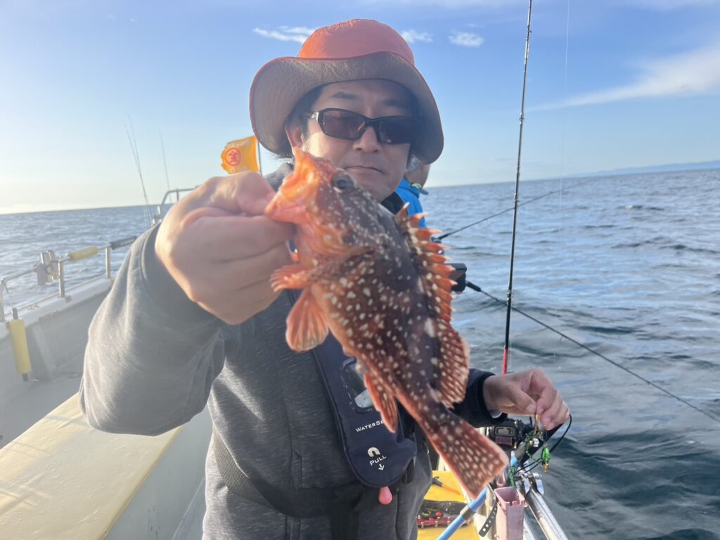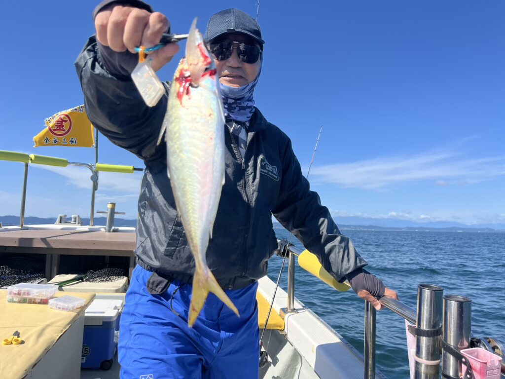 本日の釣果は、真鯛、ハナダイ、ホウボウ、カナガシラ、トラフグ、ショウサイフグ、サバフグ、ヒラメ、マゾイ、ギガアジ、ソウダガツオ、シイラ、メジ、ウッカリカサゴ‥‥14目。
