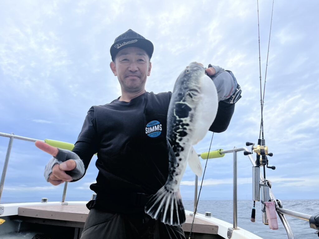 本日の釣果は、真鯛、ハナダイ、ホウボウ、カナガシラ、イナダ、ギガアジ、マサバ、トラフグ、サバフグ、ショウサイフグ、ガンゾウビラメ、シイラ‥‥12目。