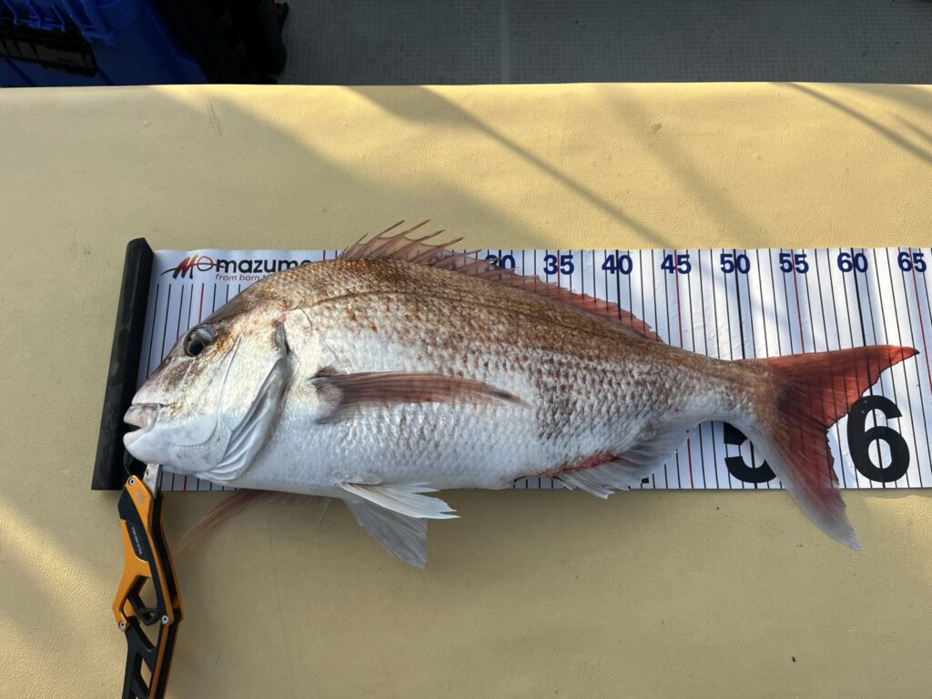 その後は拾い釣りで後半は太刀魚、ギガアジ、青物も狙いながら終わってみれば、本命真鯛は64cmを筆頭に20枚キャッチ!