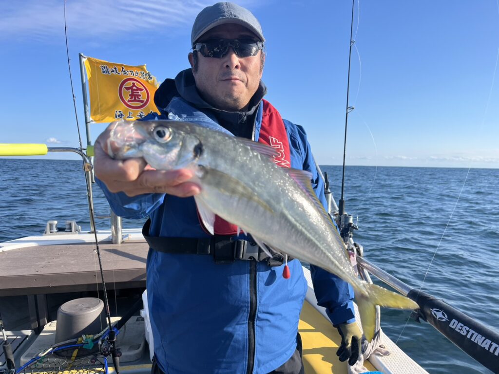 本日の釣果は、真鯛、ハナダイ、ホウボウ、カナガシラ、ヒラメ、ウッカリカサゴ、太刀魚、テラアジ、ワラサ、マサバ、ゴマサバ、イシモチ、シロギス、ショウサイフグ、サバフグ、メジ‥‥16目。