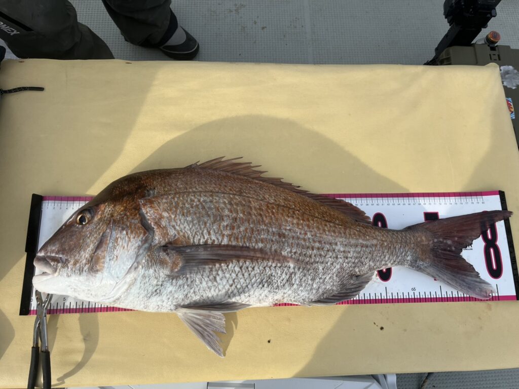 その後も青物、真鯛が続き終わってみれば本命真鯛は、85cmを筆頭に全員安打の25枚キャッチ!!