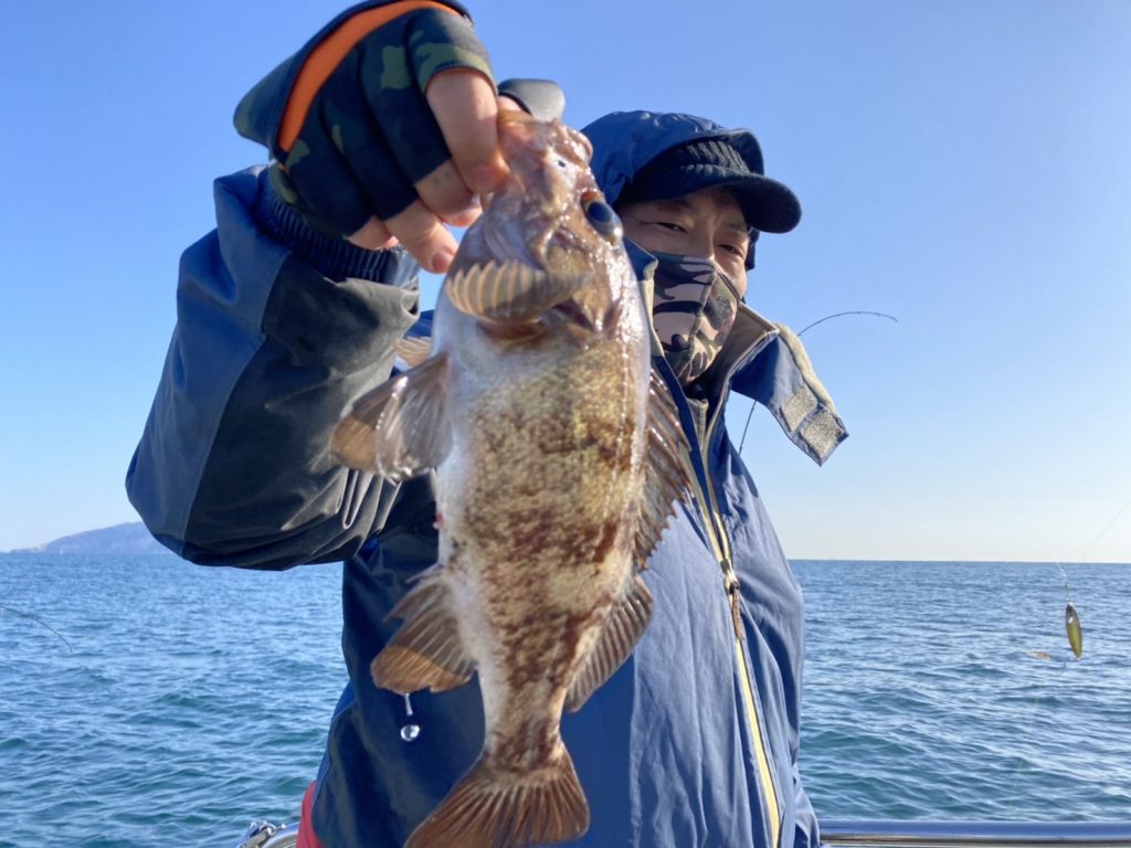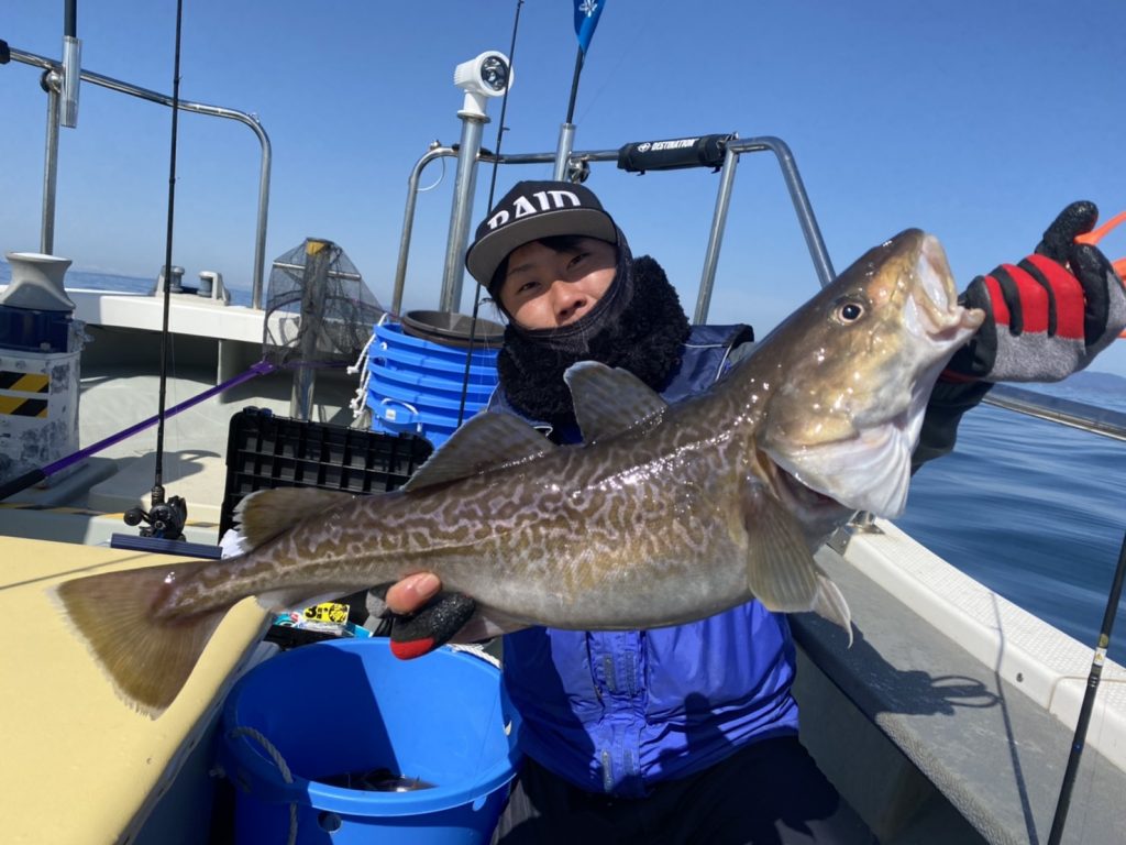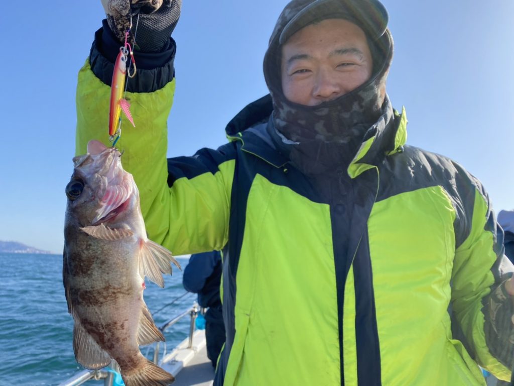 やはりちょっと早く10時過ぎぐらいから風が吹いてきたので、風の無いエリアまで回避して今期初めてのエリアでダメ元ですると、直ぐにナイスサイズのクロソイが立て続けに釣れて、その後本命の真鱈がヒット!(笑)