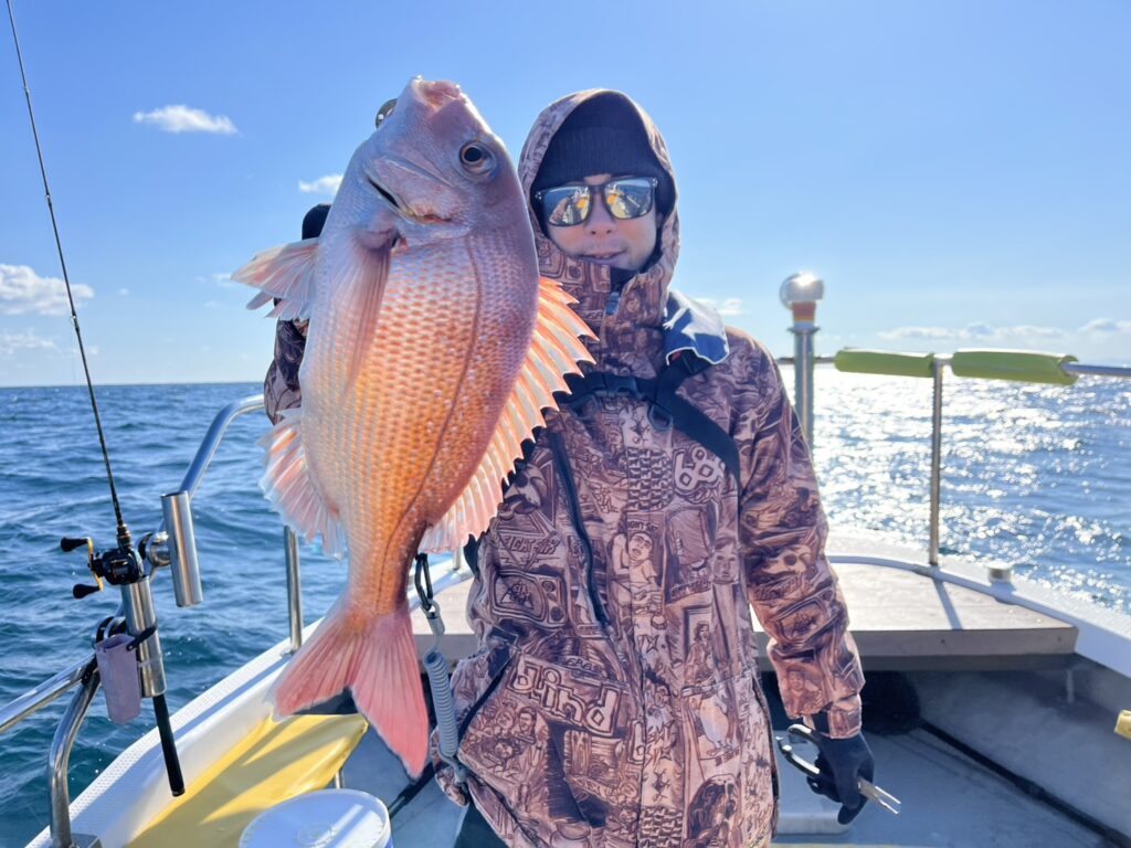少しずつ移動を繰り返し根魚を中心にキャッチするとその中で本命真鯛もキャッチ!