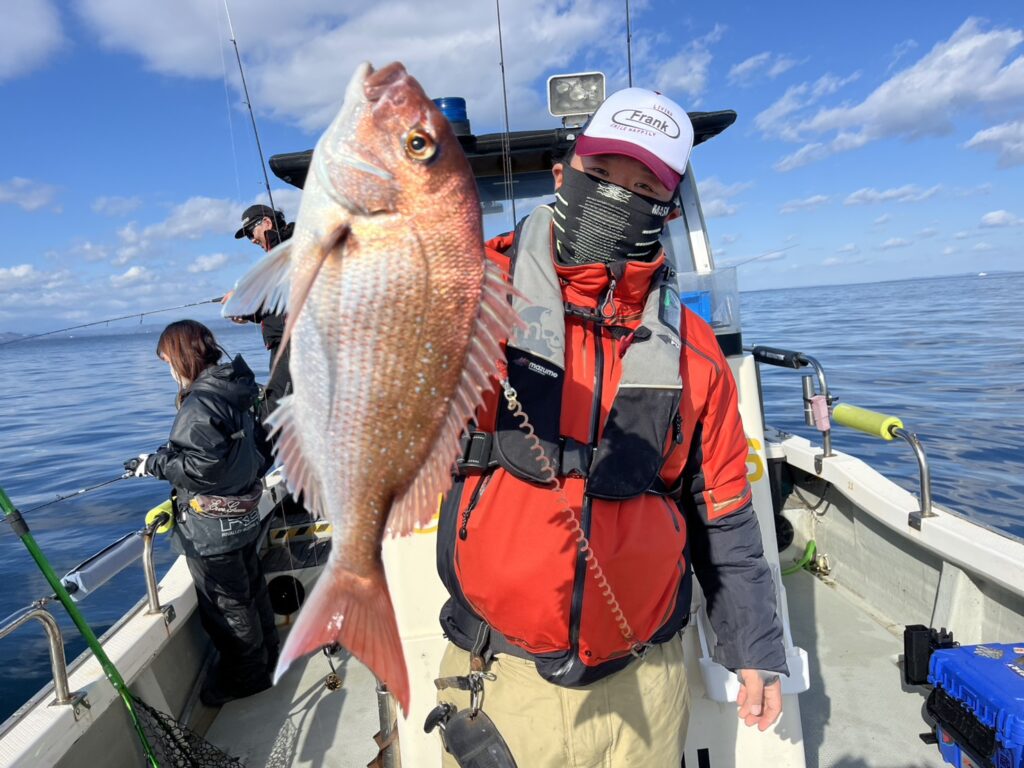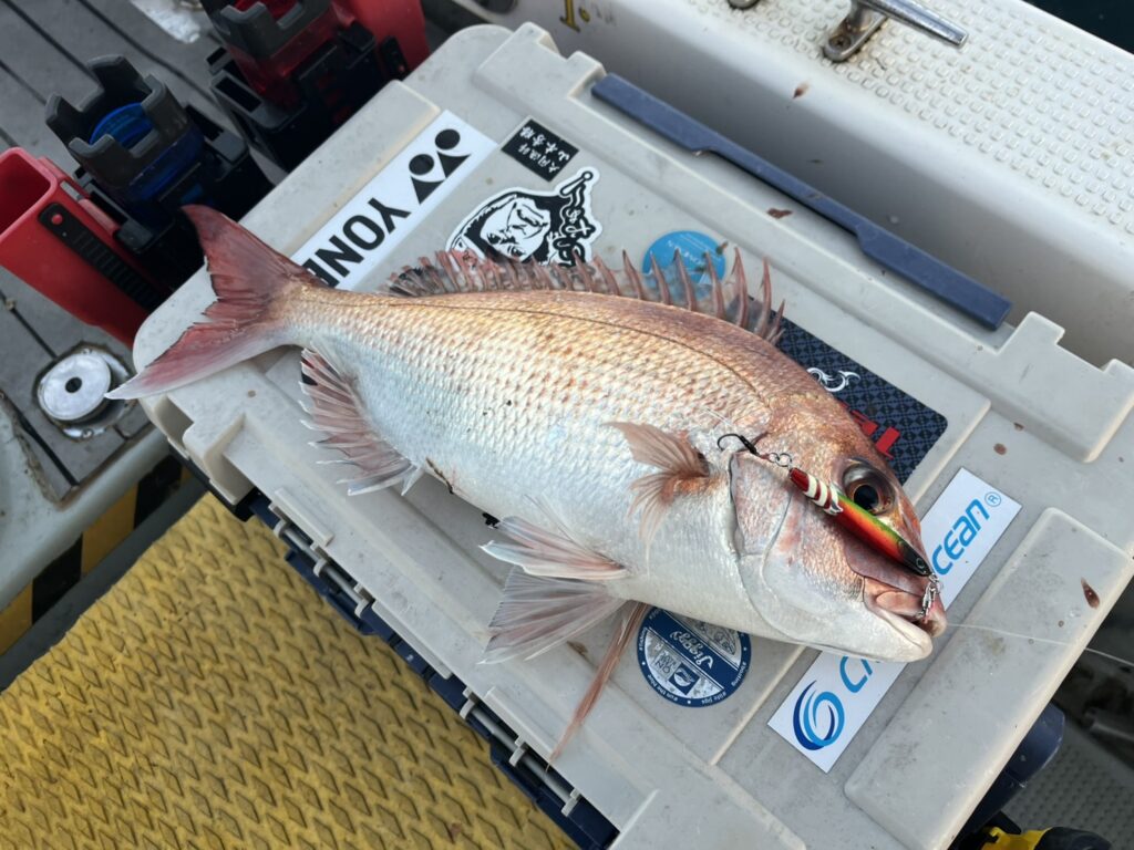 今日は良型も多く、最後は大規模な鳥山の中から青物と良型真鯛を追加して船中9枚キャッチして終了となりました。