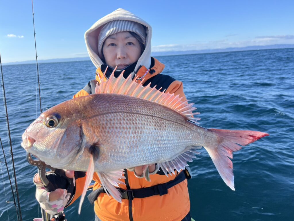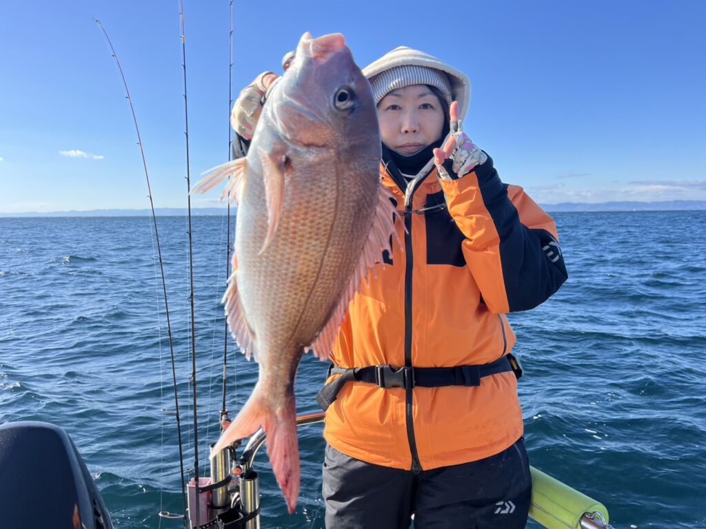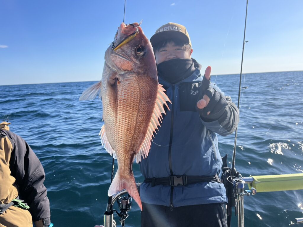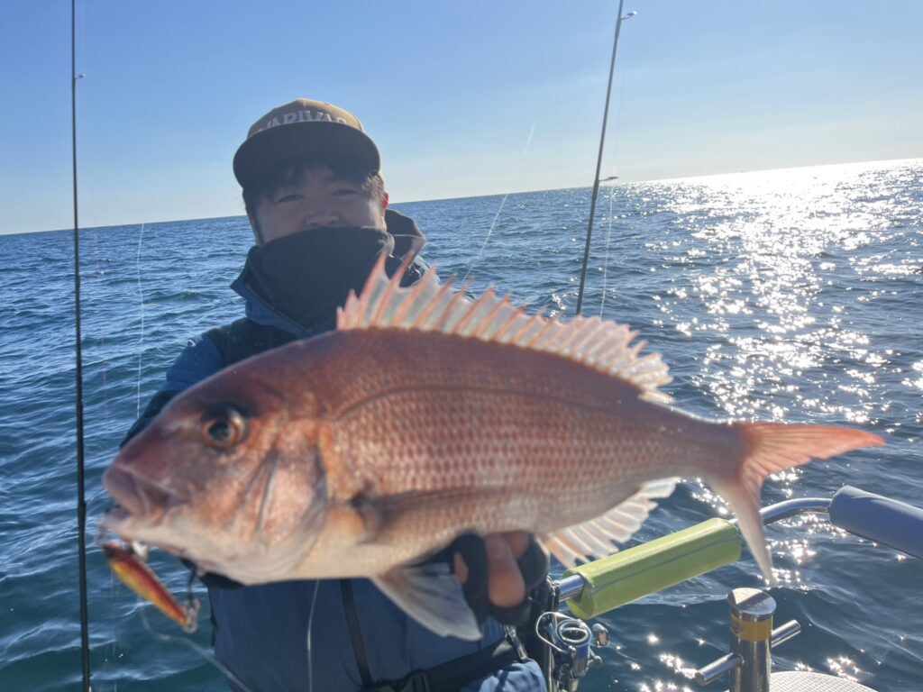 開始早々1頭目から本命真鯛をキャッチ!