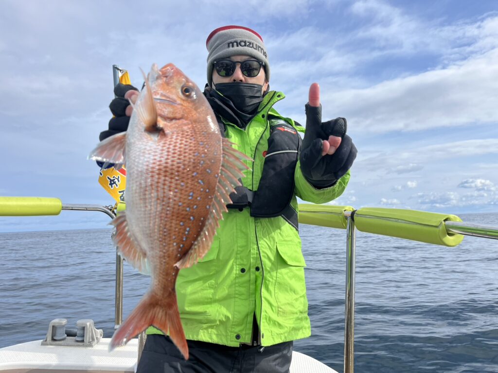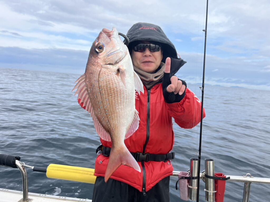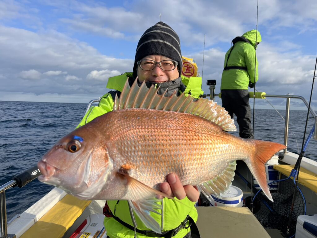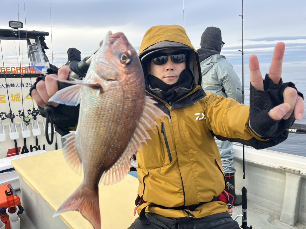 反応見ながら移動すると本命真鯛をキャッチ!