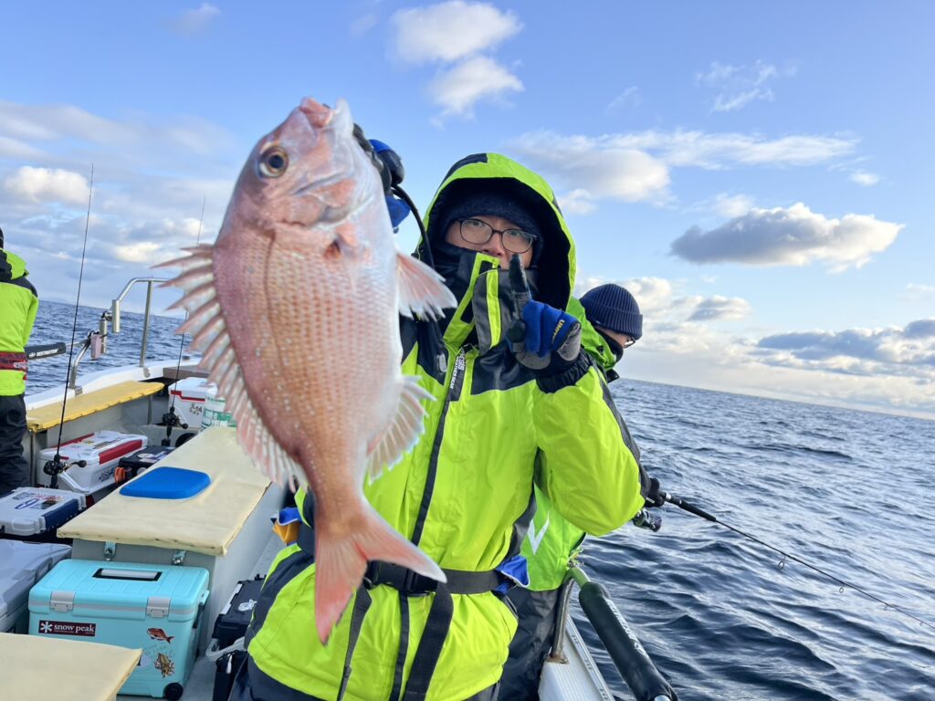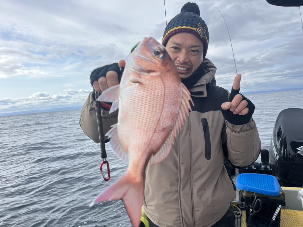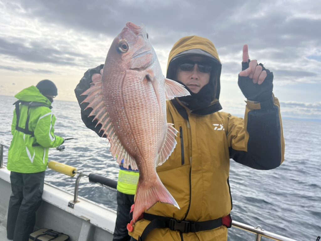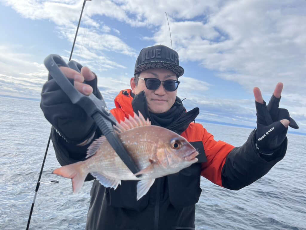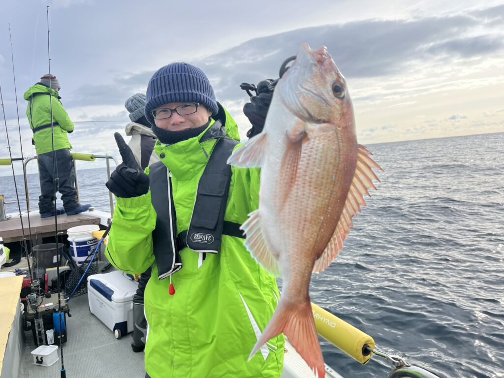 反応見ながら移動すると本命真鯛をキャッチ!