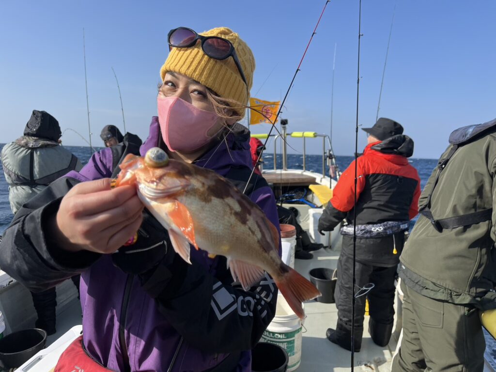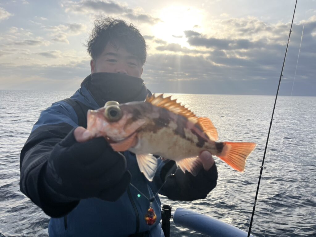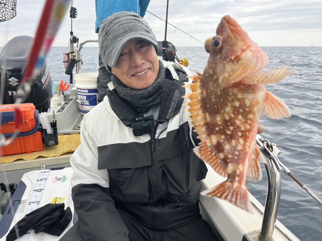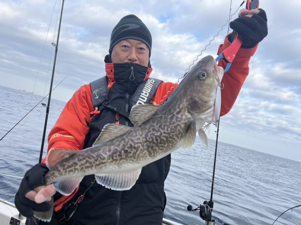 ポイントに着くとベタ凪の潮動かず苦戦しましたが、今日も真鱈、真鯛、根魚をキャッチ!
