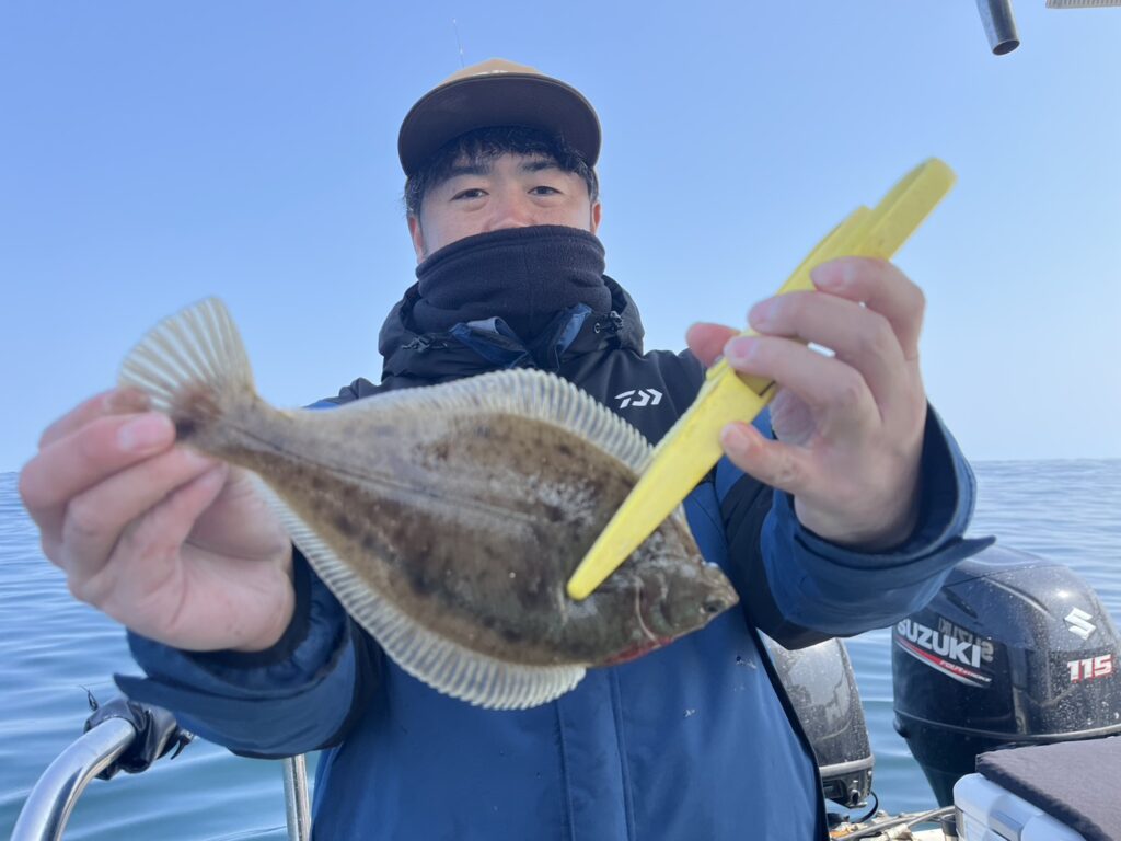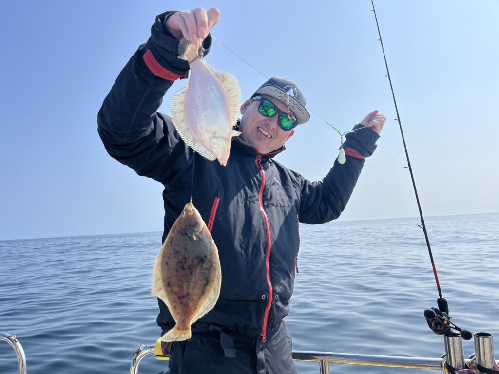最後にカレイ狙いでエリアチェンジすると、今日は昨日のウネリもだいぶ落ち着き約2時間でトップ12枚!船中30枚近くの釣果になり終了となりました。