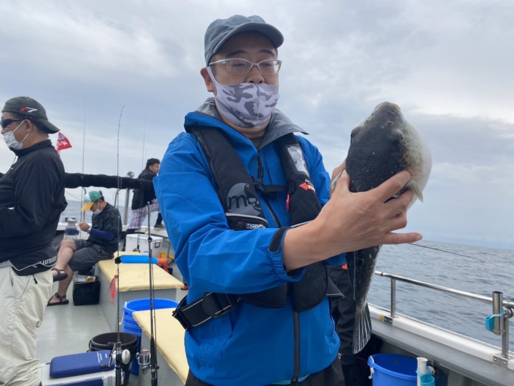結局、後半の皆さんの頑張りでマダイ8枚、トラフグ10本以上、青物大漁の釣果になりました。