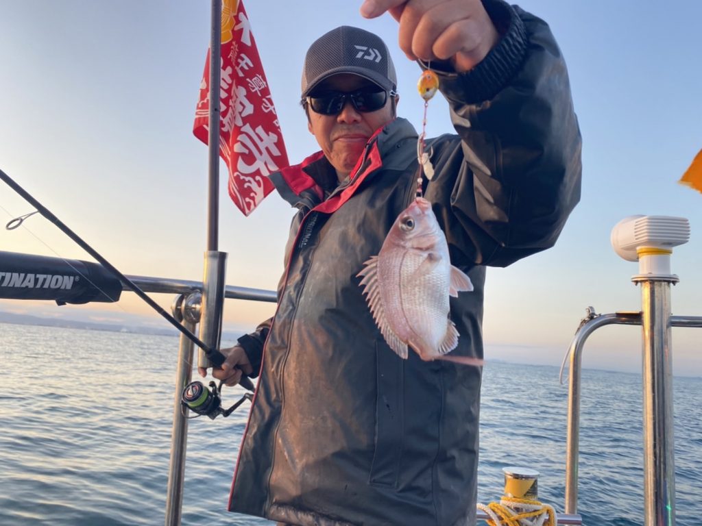 昨日の激渋を心配しながら出船してファーストポイントで釣行すると、開始早々KYマダイ…。