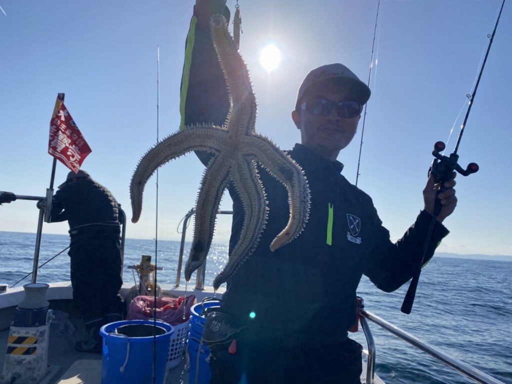 本日の釣果は、マダイ、ホウボウ、タチウオ、イナダ、カサゴ、マゾイ、ヒラメ、アイナメ、ショウサイフグ、ヒトデ…10目。