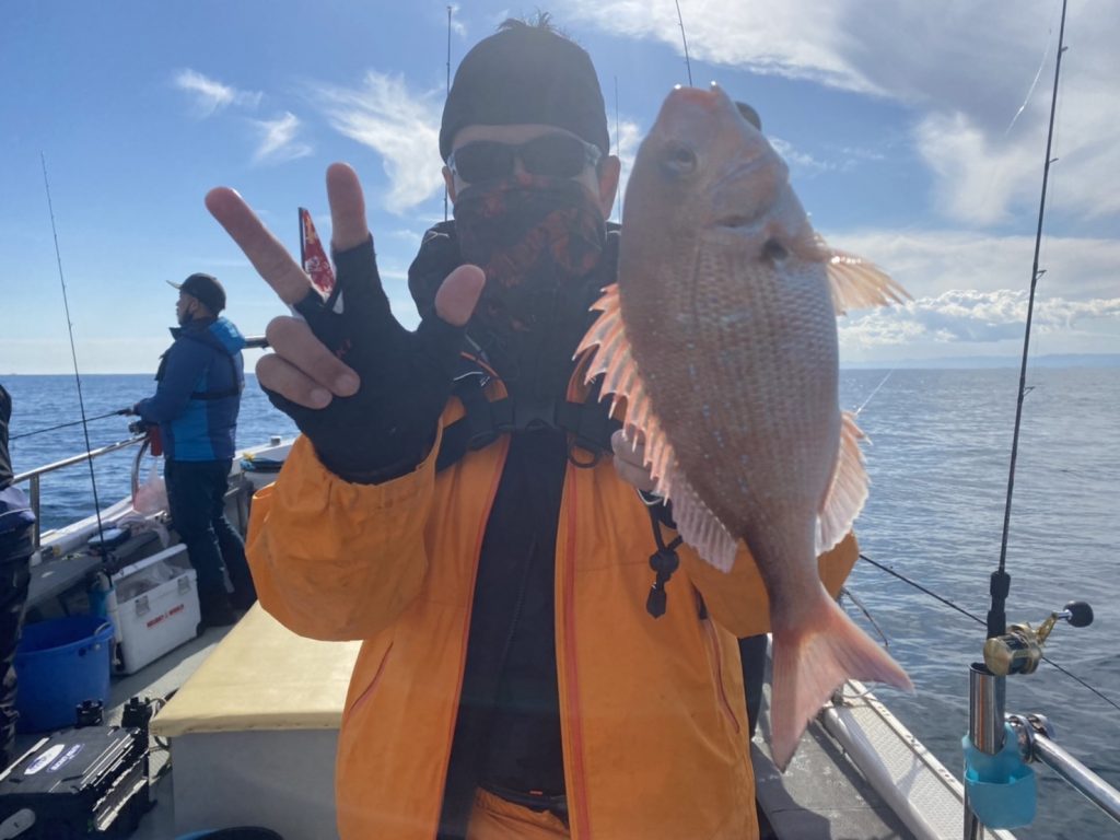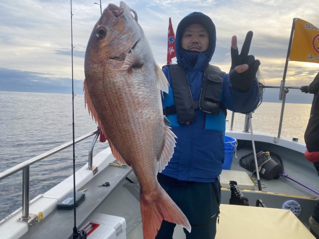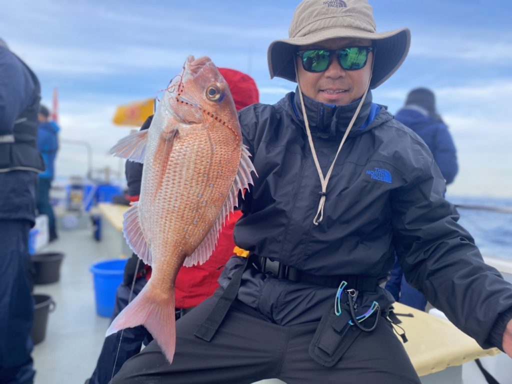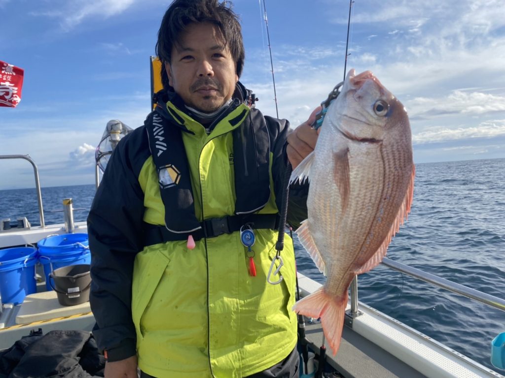 こちらのアングラーは当船初マダイおめでとう㊗
