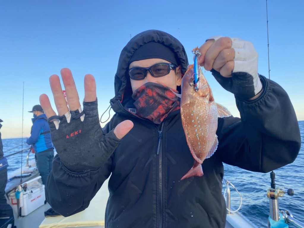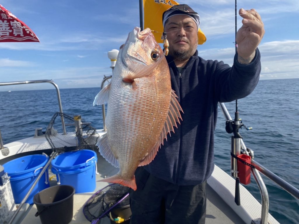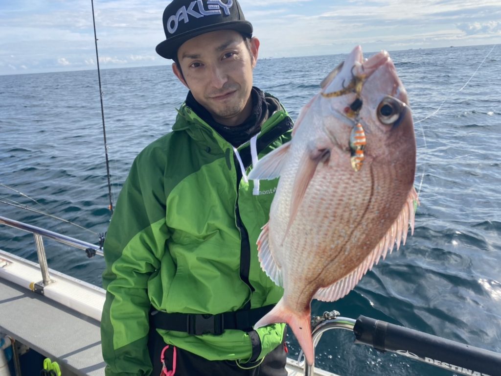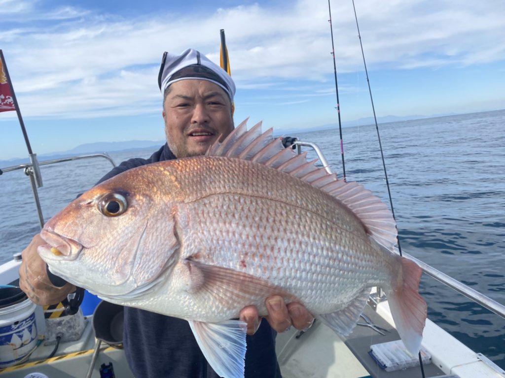 こちらのアングラーは当船初マダイおめでとう㊗