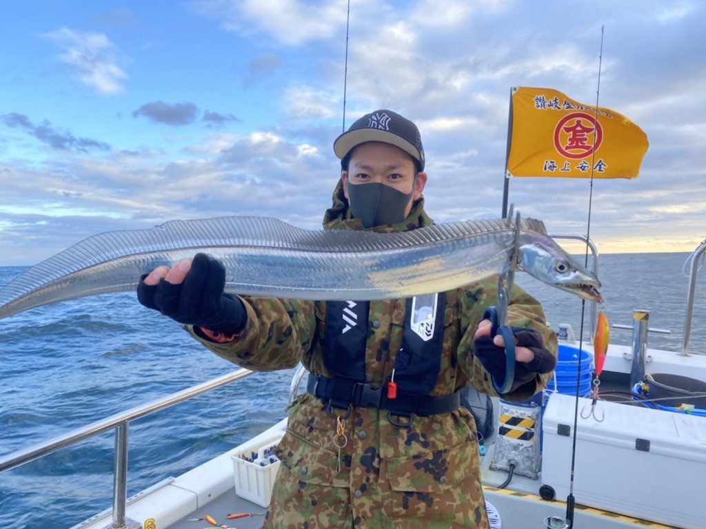 やはり午後から風が吹いてきて少し早めの帰港となりましたが何とかマダイは3枚キャッチにタチウオも3本キャッチ。