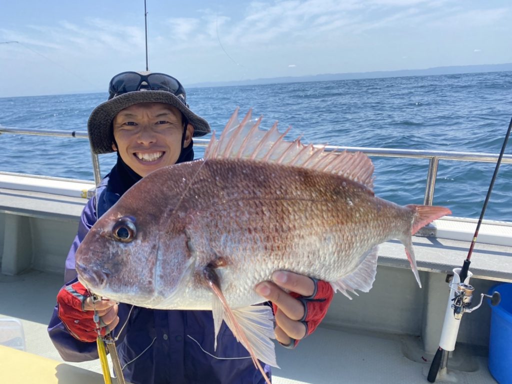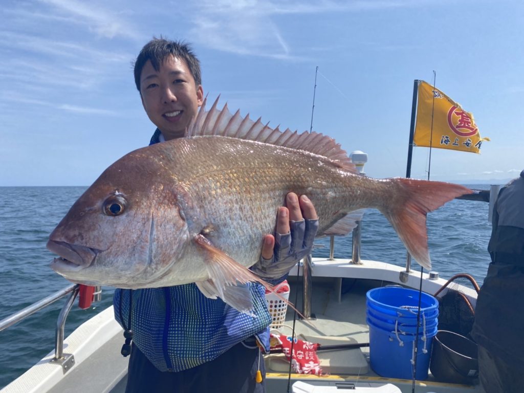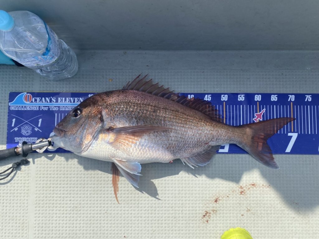 上がって来たのは今季最大71cmの大鯛!