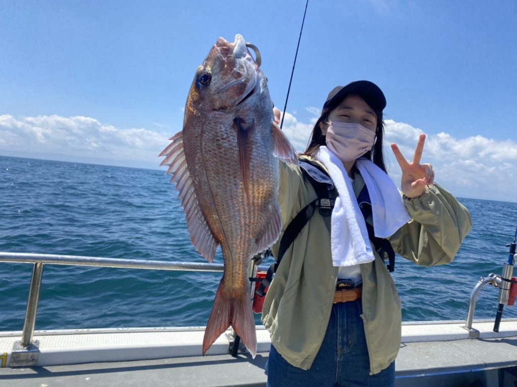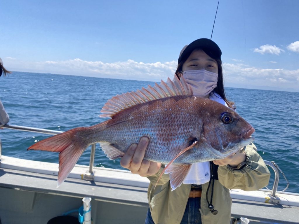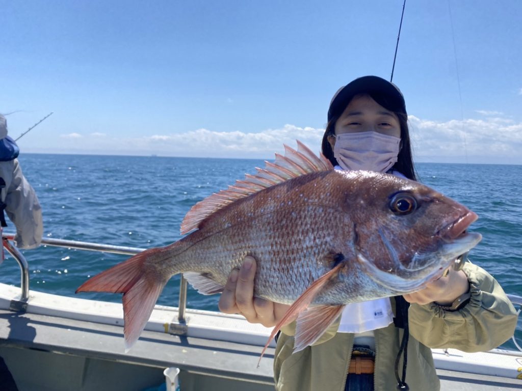 その中で今日も船釣り初挑戦の釣りガールがやってくれました!マダイキャッチ!
