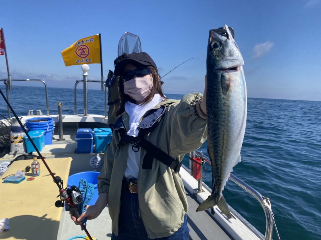 こちらの釣りガールも初めての船釣りで特大サバ!