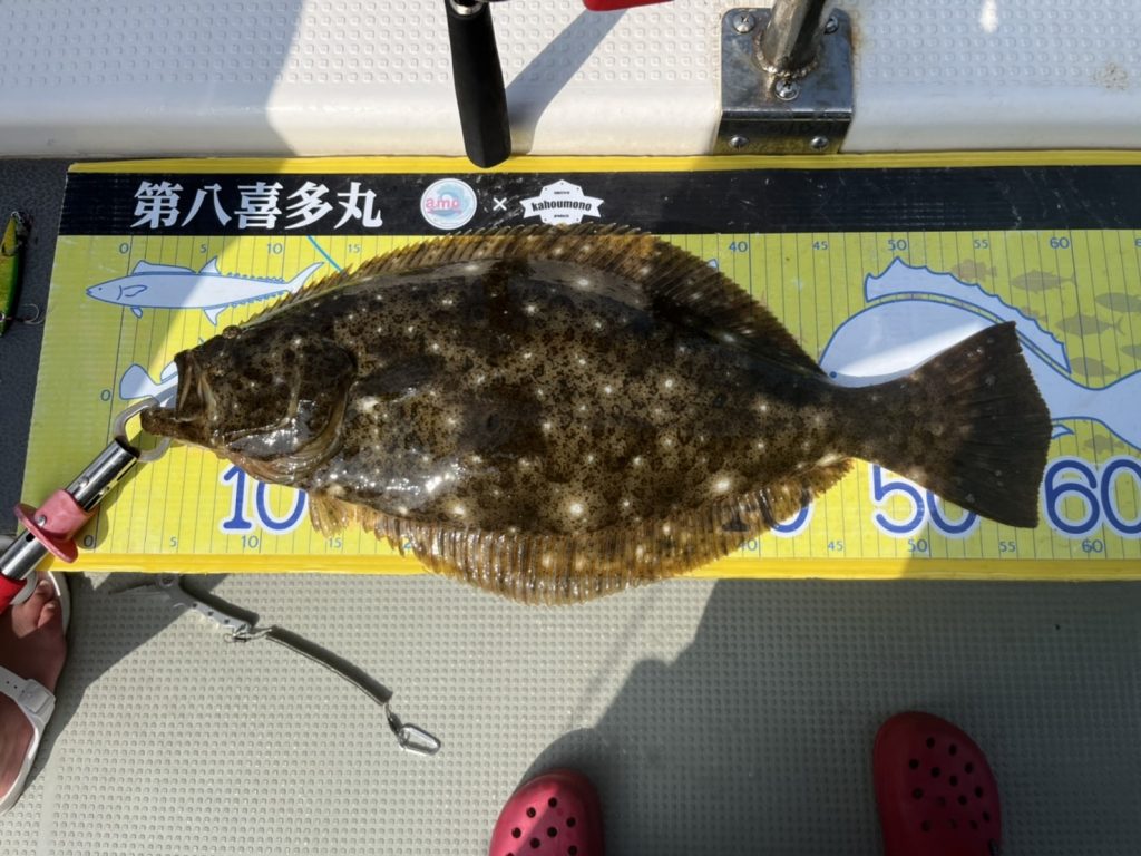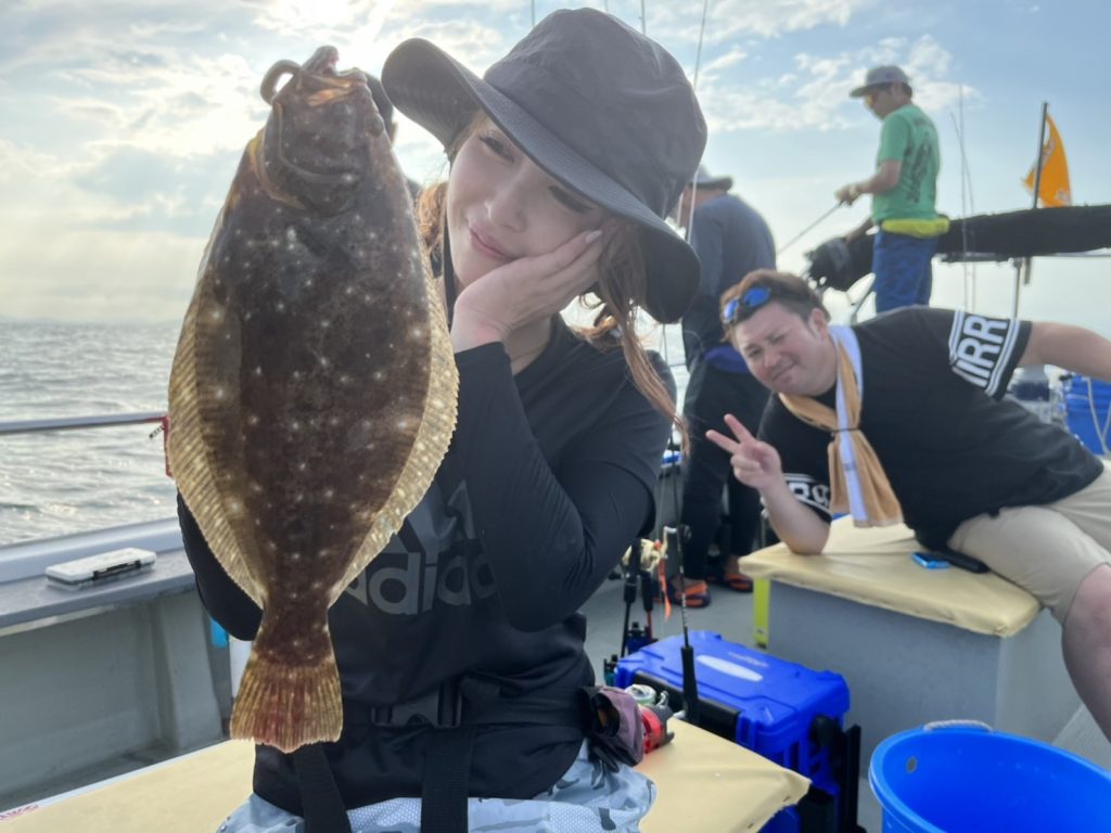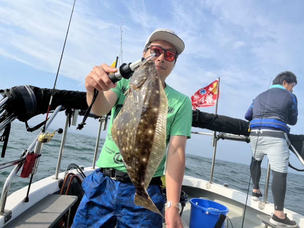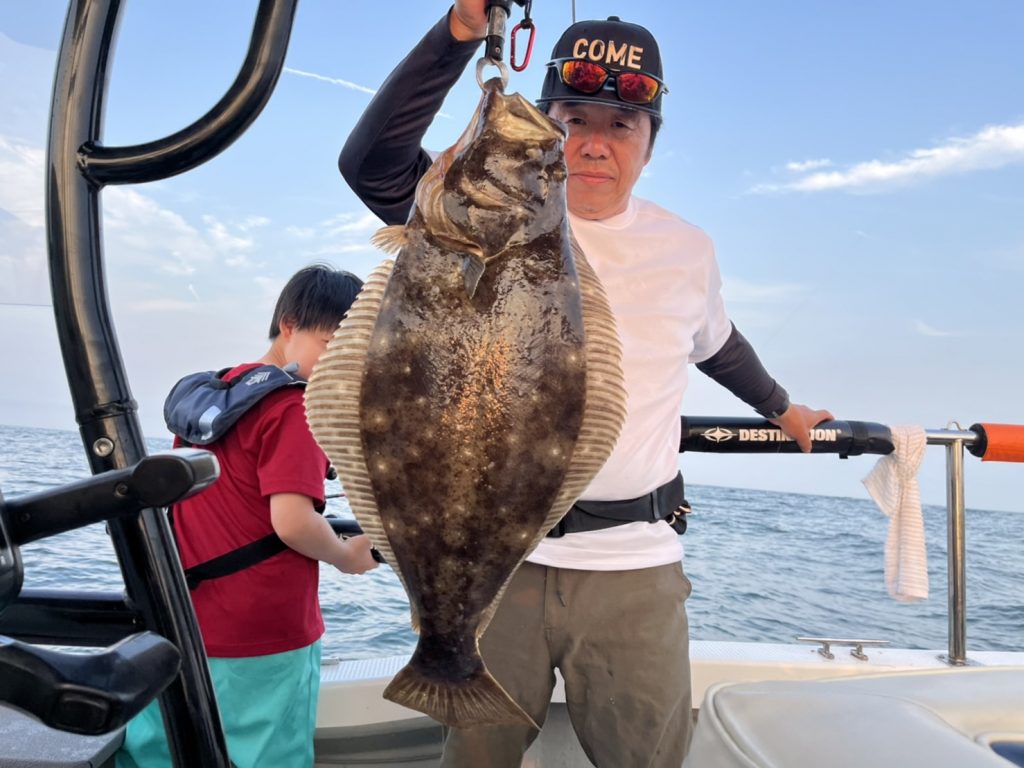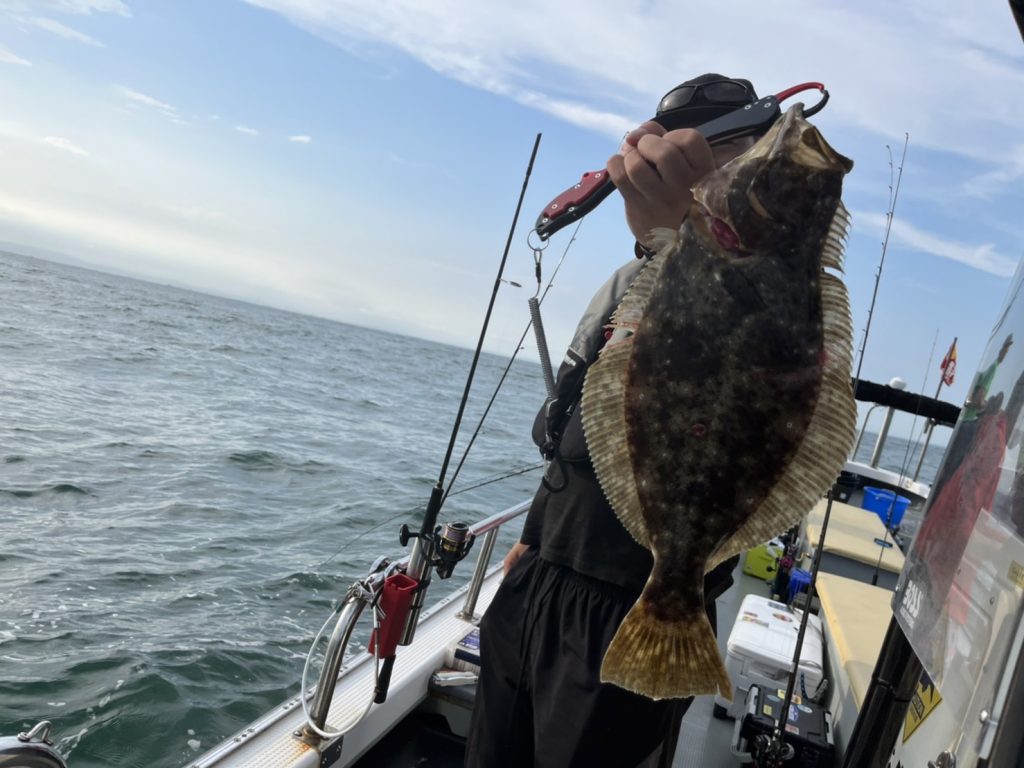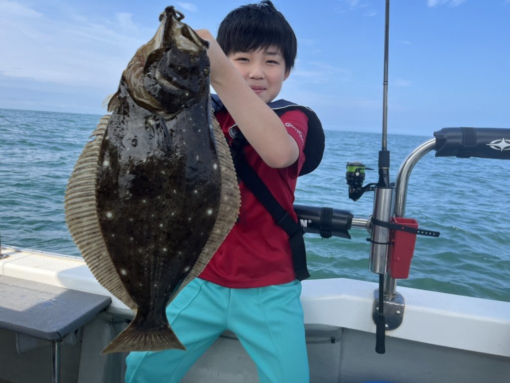 小学生アングラーもがんばって自力で良型ヒラメをキャッチしていました!