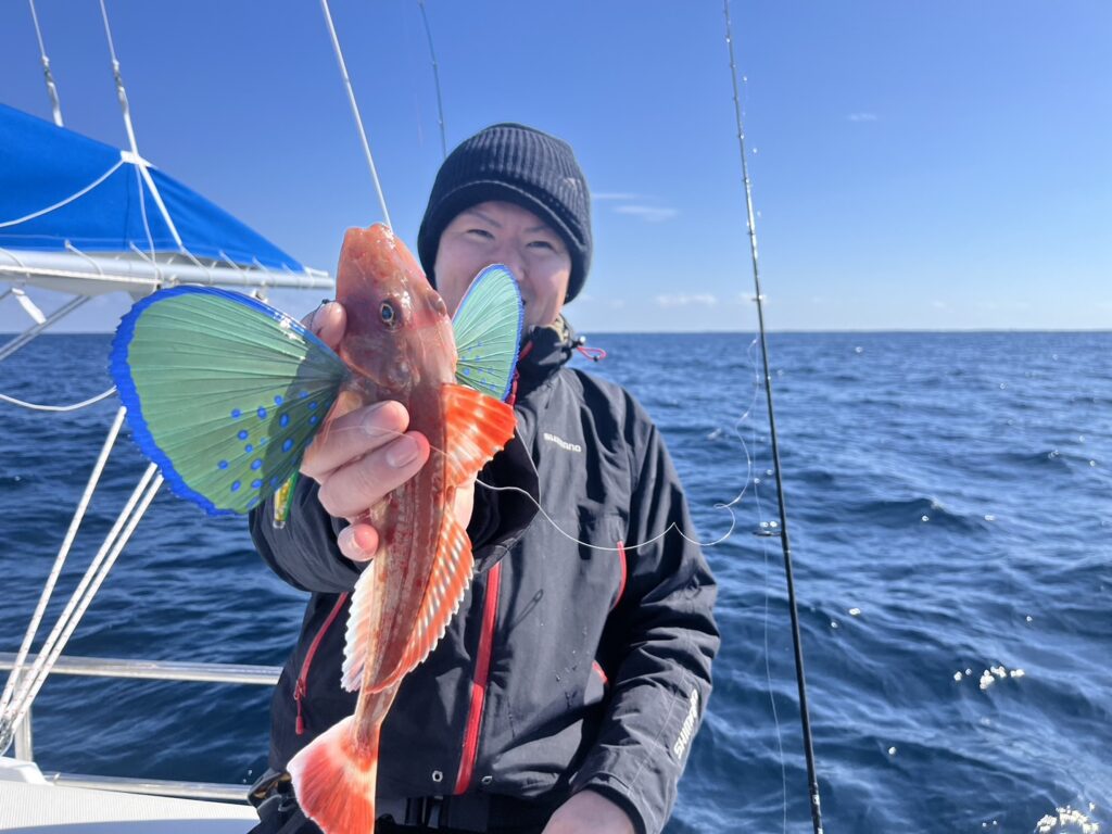 本日の釣果は、太刀魚、マゾイ、ホウボウ、ヒラメ、ミズガレイ、カナガシラ、アイナメ、ショウサイフグ…8目。