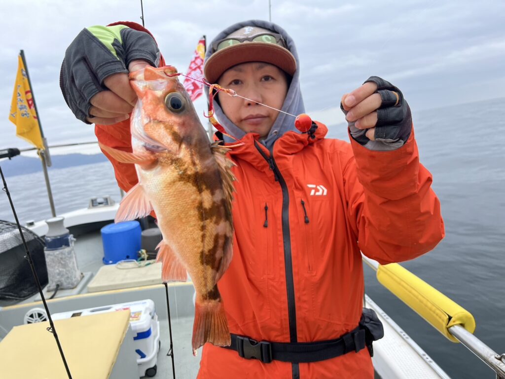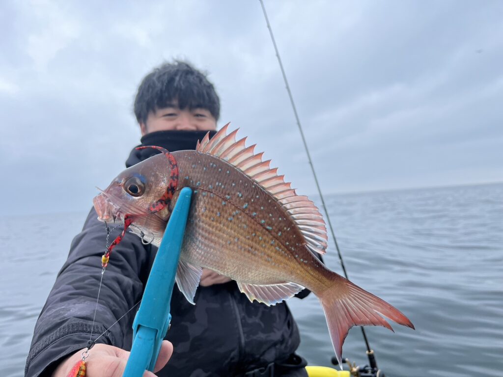 すると今日も着いて直ぐにマゾイやカサゴ、メバル等が顔を見せ本命真鯛も!