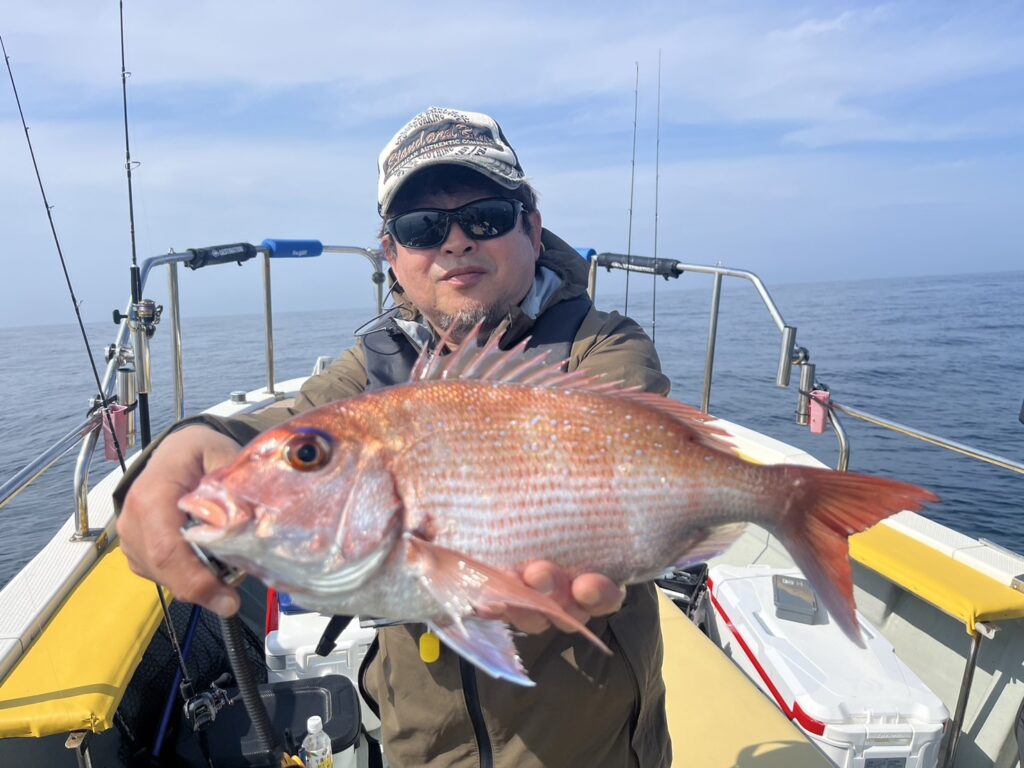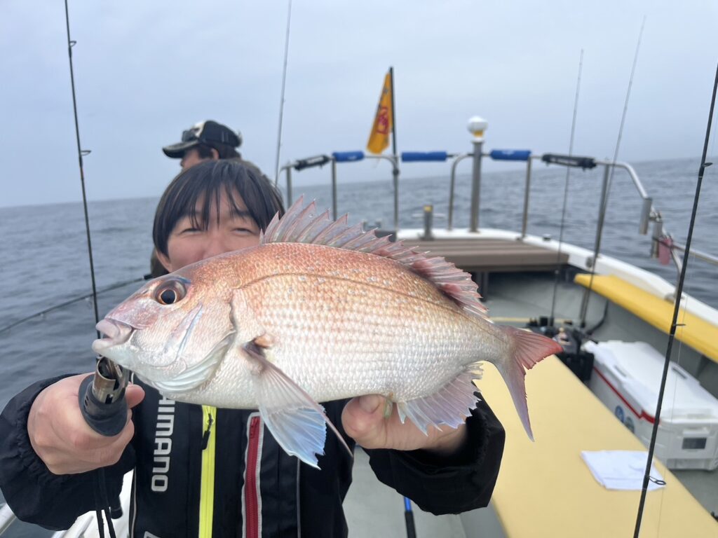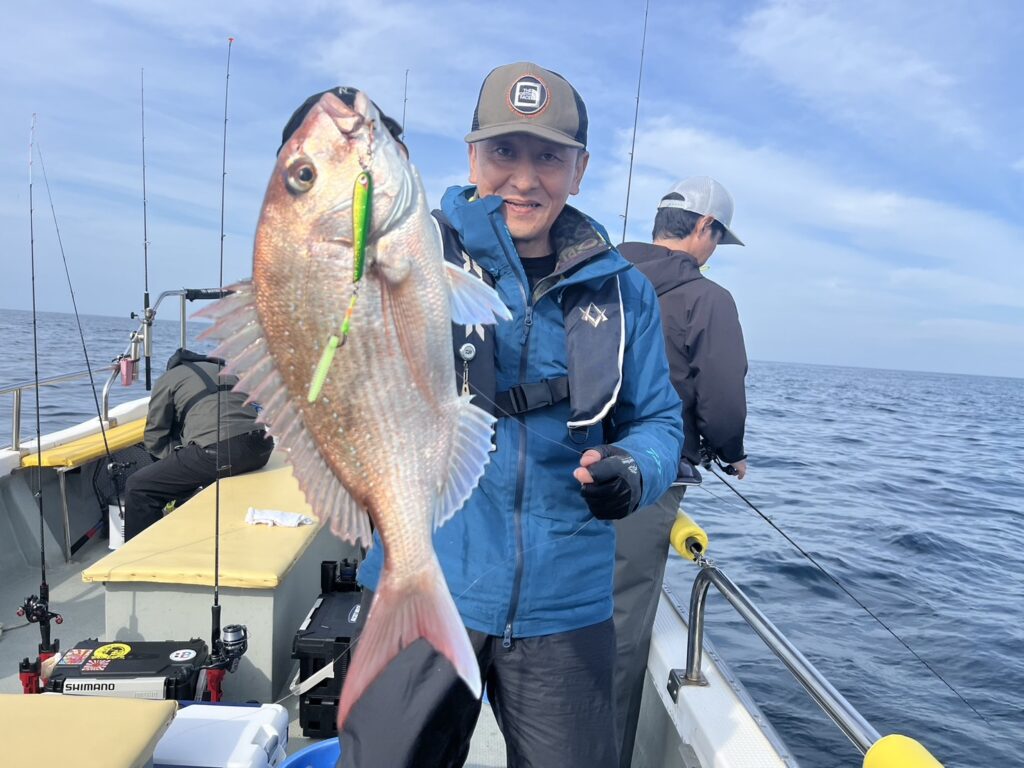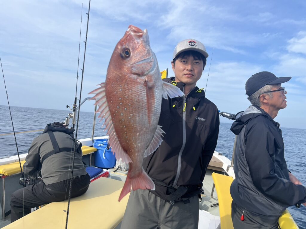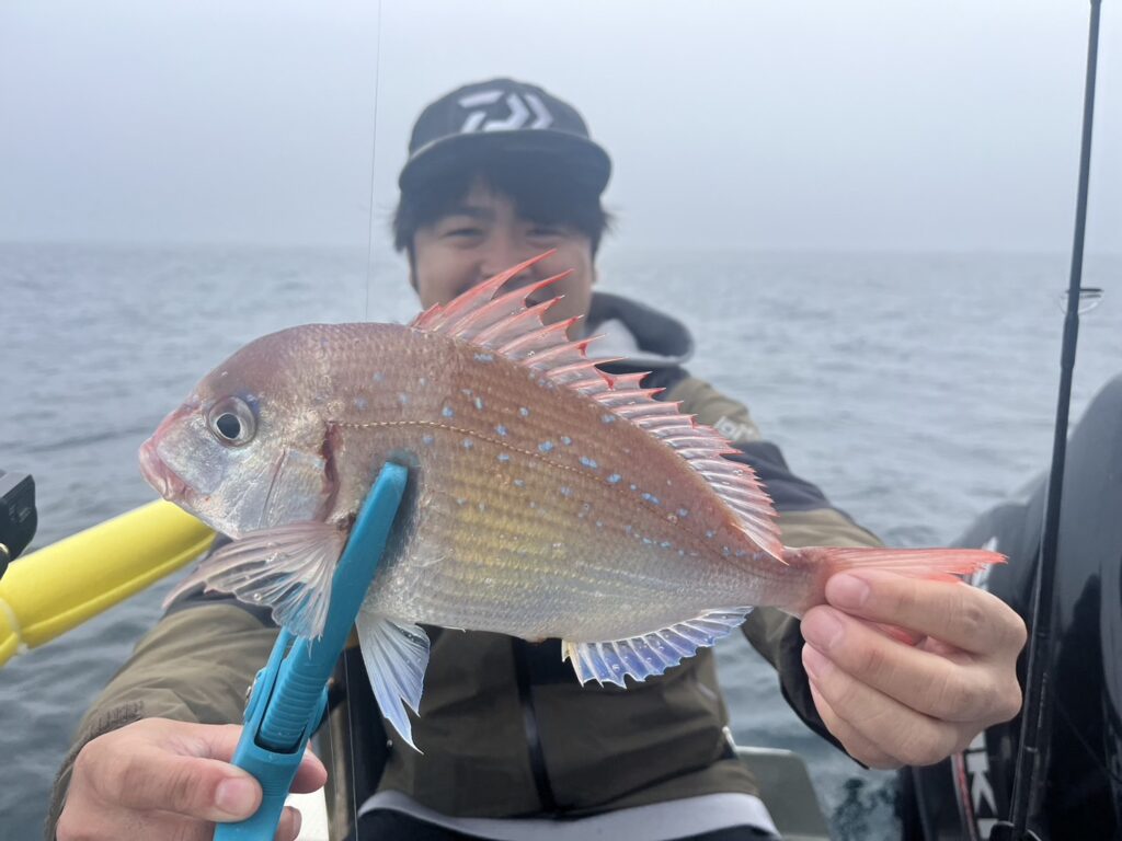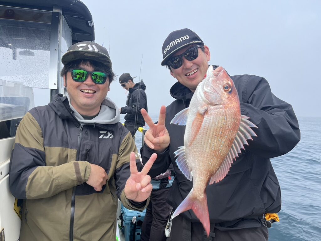 霧が晴れたタイミングで沖に出ると真鯛を追加しながら、ゲストも追加!
