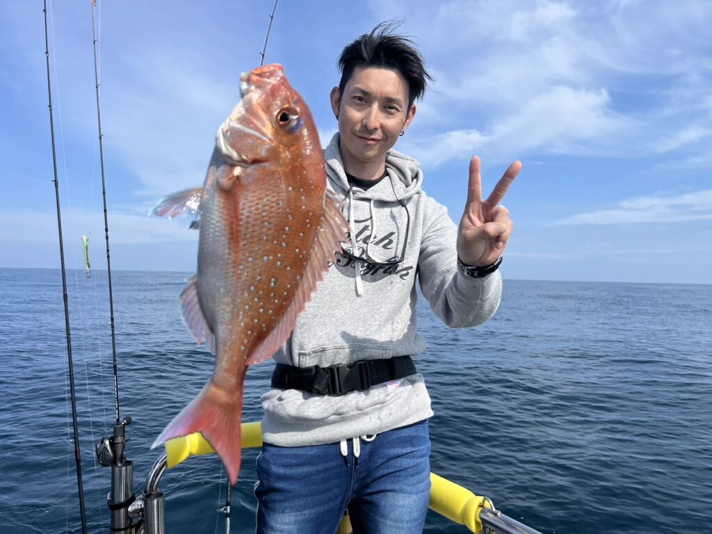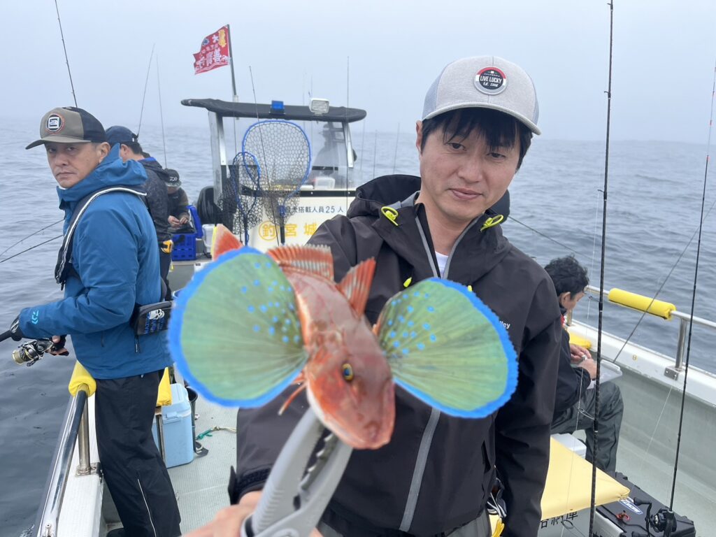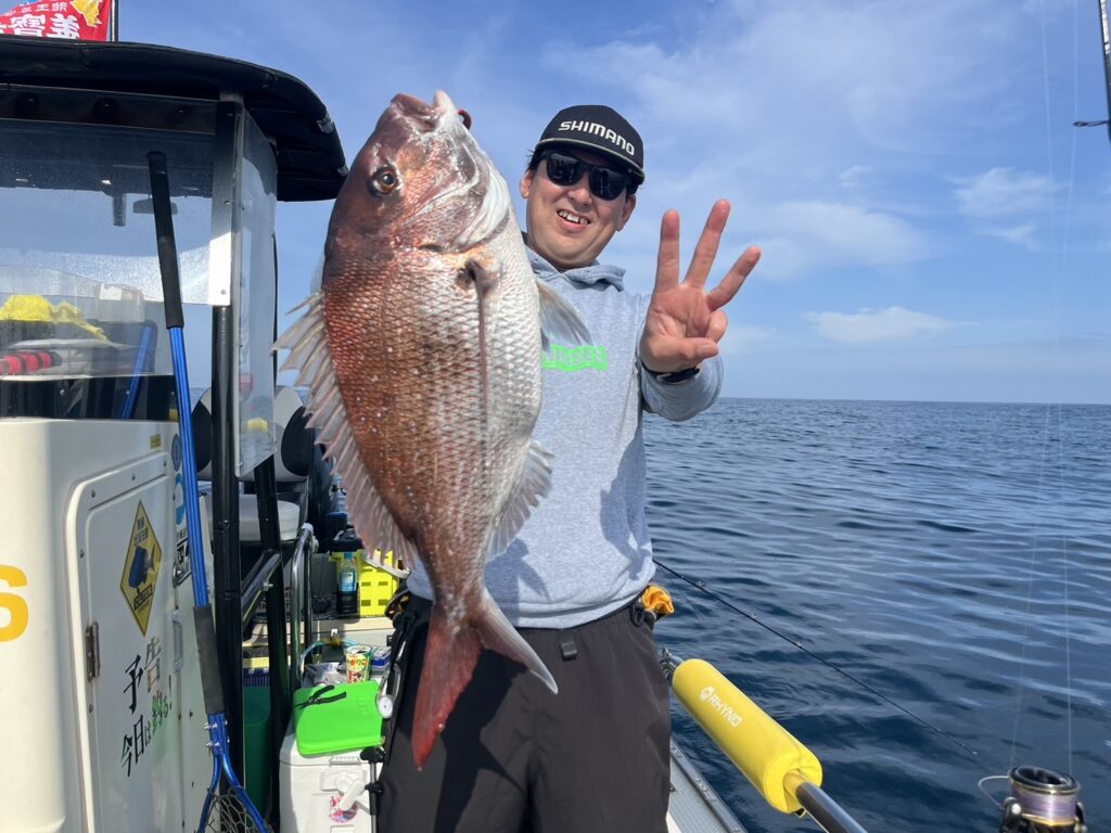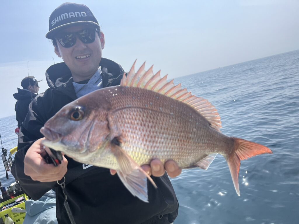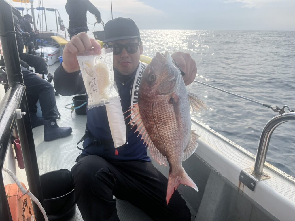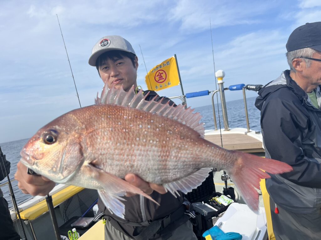 霧が晴れたタイミングで沖に出ると真鯛を追加しながら、ゲストも追加!