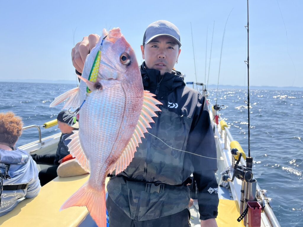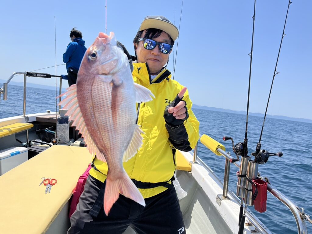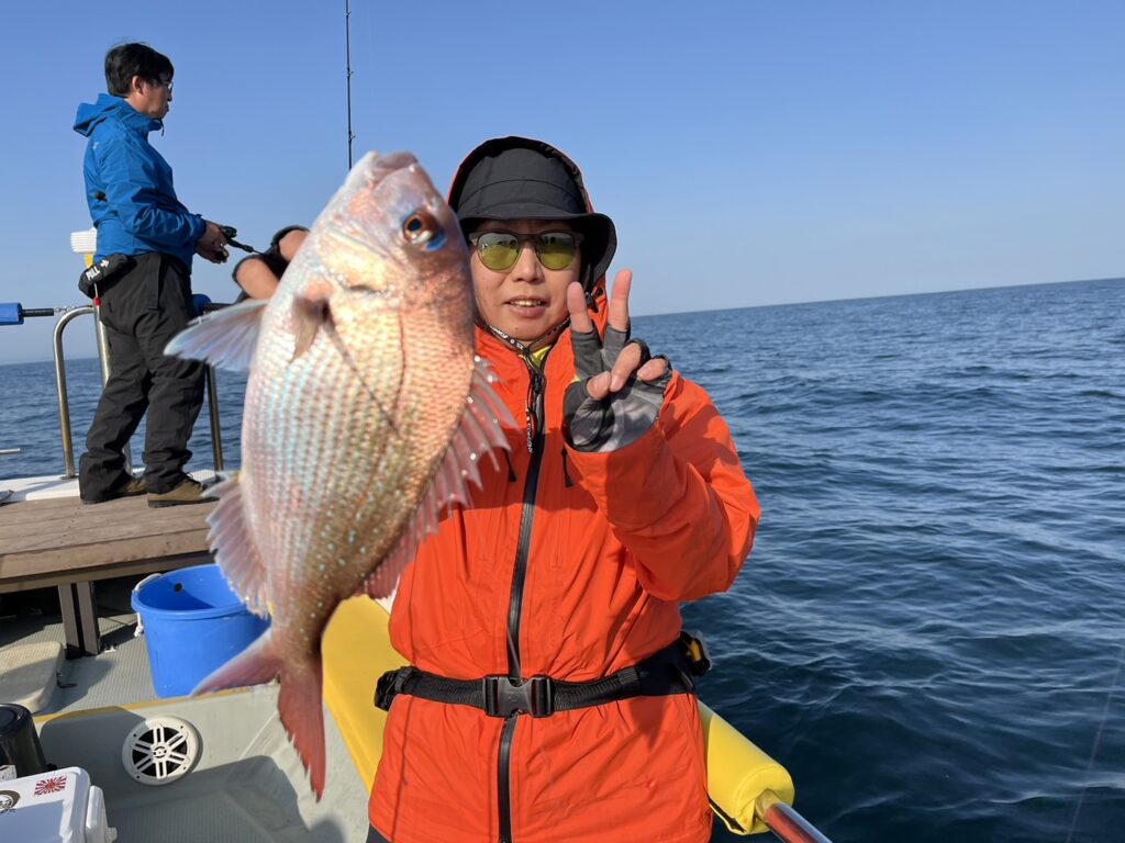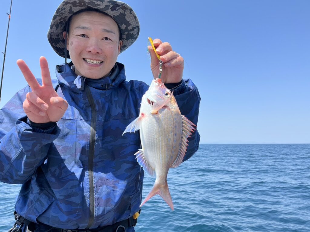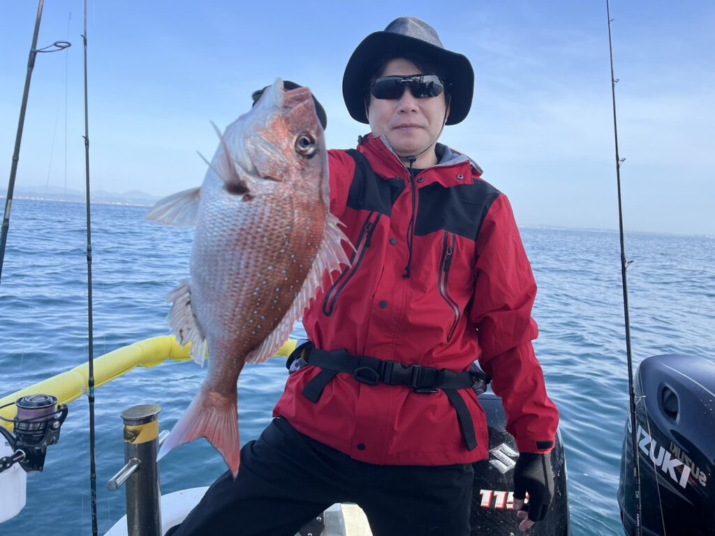 すると本命真鯛を直ぐにキャッチ!