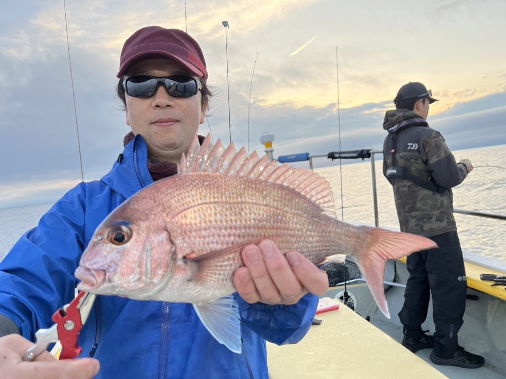 開始早々本命真鯛をキャッチ!その後はゲストは釣れるも真鯛が遠い‥‥。