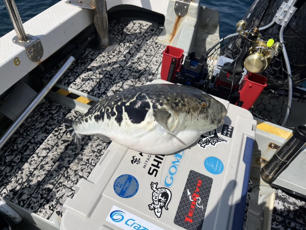 本日の釣果は、真鯛、ハナダイ、ホウボウ、カナガシラ、イナダ、ヒラメ、ミズガレイ、トラフグ、ゴマフグ、ショウサイフグ‥‥10目。